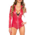 Koucla viininpunainen wetlook vetoketjubody - seksikäs bodysuit bileisiin tai piristämään parisuhdetta
