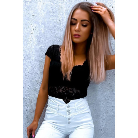 Musta lyhythihainen pitsinen body