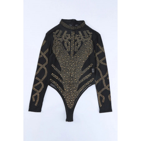 Plus de details Tuote saatavilla eri vaihtoehdoillaMusta pitkähihainen strassikoristeinen mesh-body