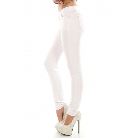 Valkoiset push up -farkut takapuolta korostavalla leikkauksella. Valkoiset farkut ovat erityisen suosittuja kesäaikaan. Nämä valkoiset basic farkut, joiden takapuolta imarteleva leikkaus saa pepun näyttämään pyöreämmältä, sopivat loistavasti sekä arkeen, erilaisiin illanistujaisiin että treffeille. Valkoinen on helppo yhdistää kaikkien värien kanssa; pukeudu kokovalkoiseen asuun, yhdistä housut maanläheiseen tai pirteään yläosaan - kaikki sävyt sopivat valkoisen kanssa upeasti. Valkoisten farkkujen alle suosittelemme vaaleita tai punaisia alushousuja. Valkoiset peppufarkut keräävät katseet; pue alle stringit, jos et halua alushousujen rajojen näkyvän.