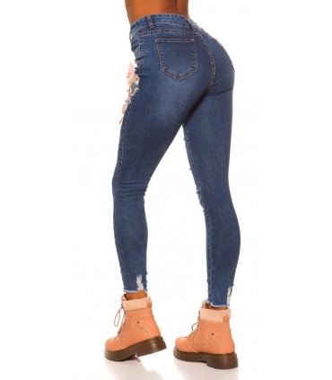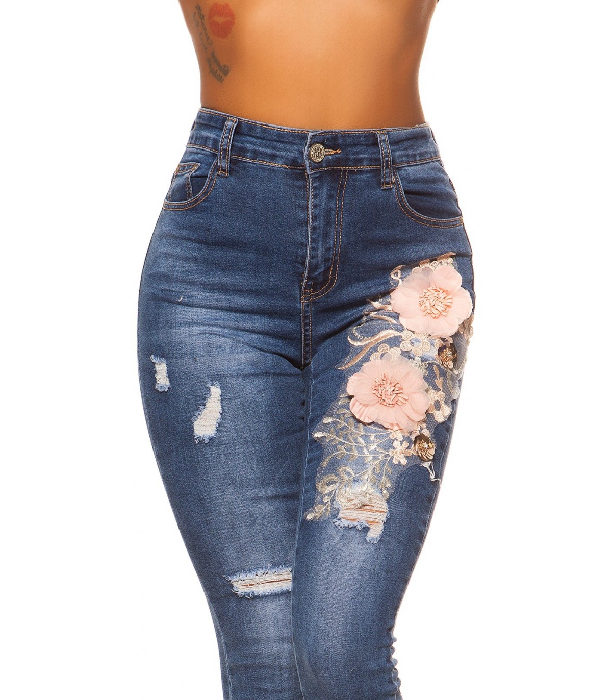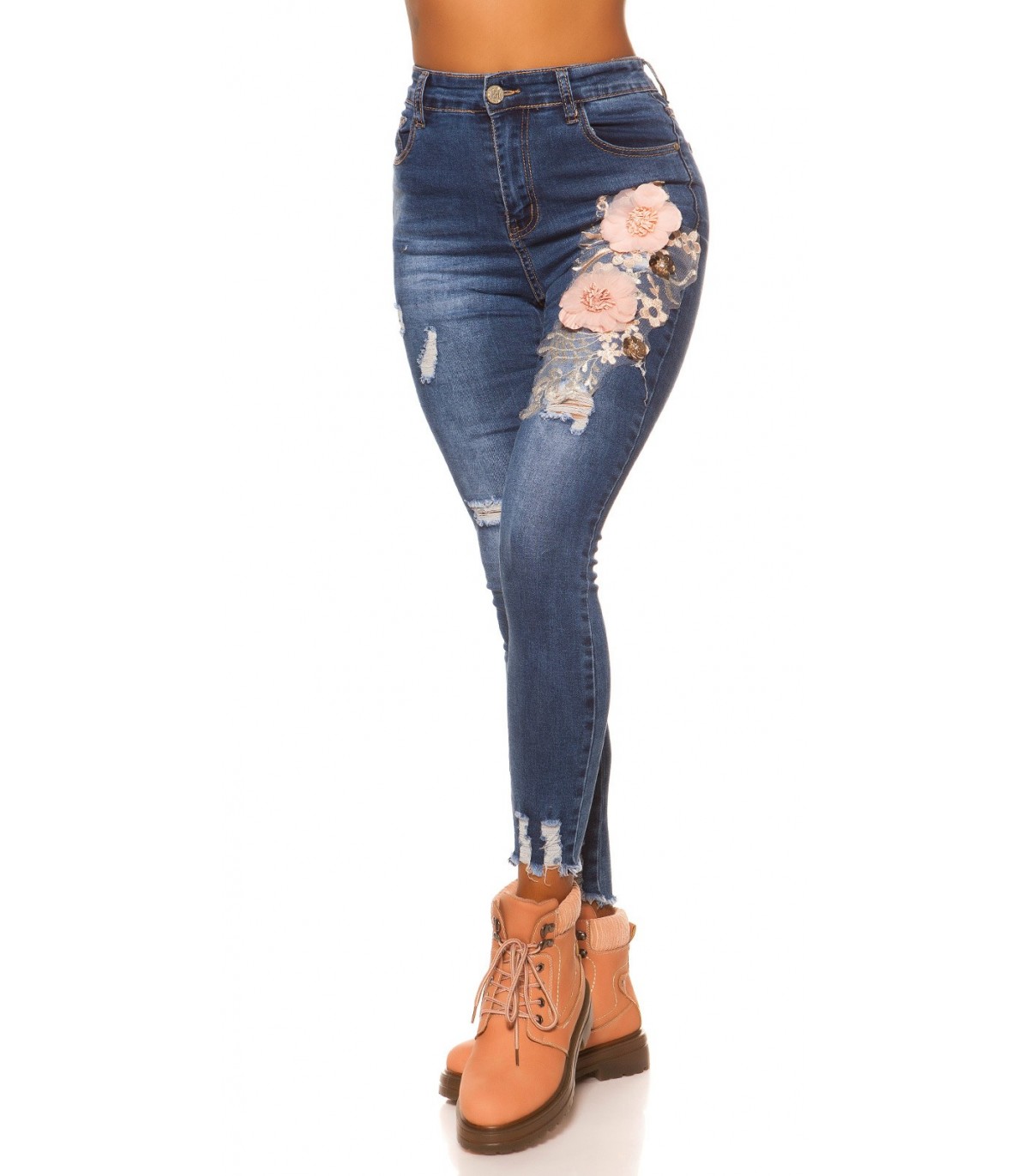 Plus de details Älä mieti liian pitkään - viimeinen kappale varastossa!Siniset kukkakoristeiset korkeavyötäröiset farkut [LÖYTÖ]