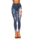 Siniset kukkakoristeiset korkeavyötäröiset farkut [LÖYTÖ]