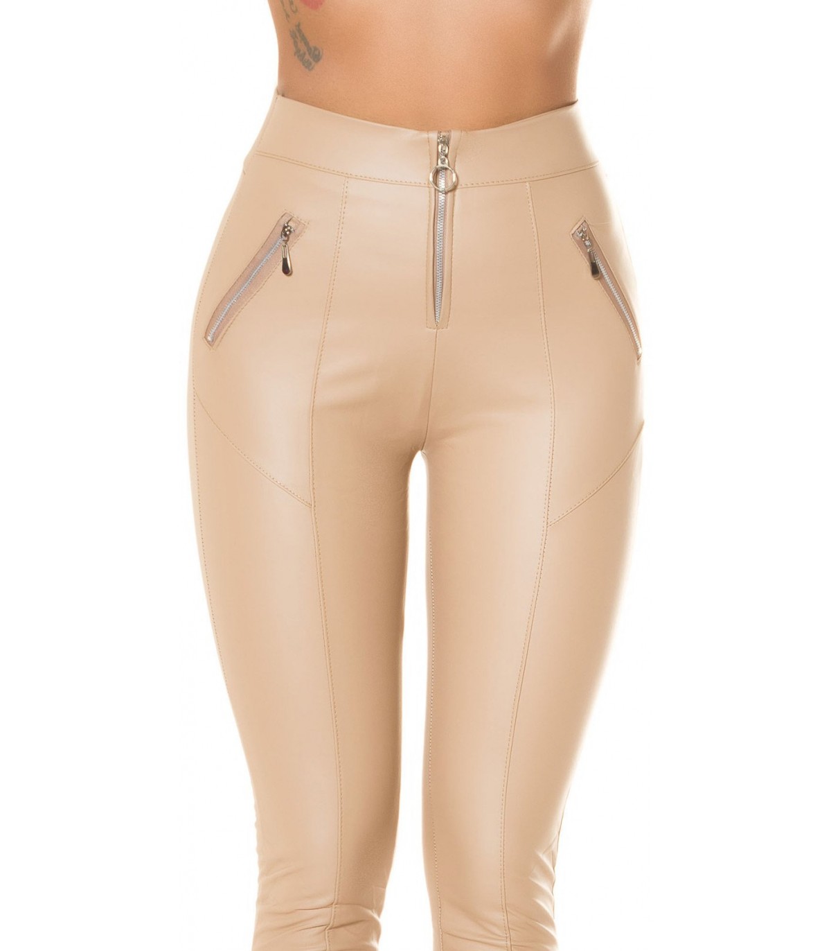Plus de details Älä mieti liian pitkään - viimeinen kappale varastossa!Beiget vetoketjukoristeiset tekonahkahousut