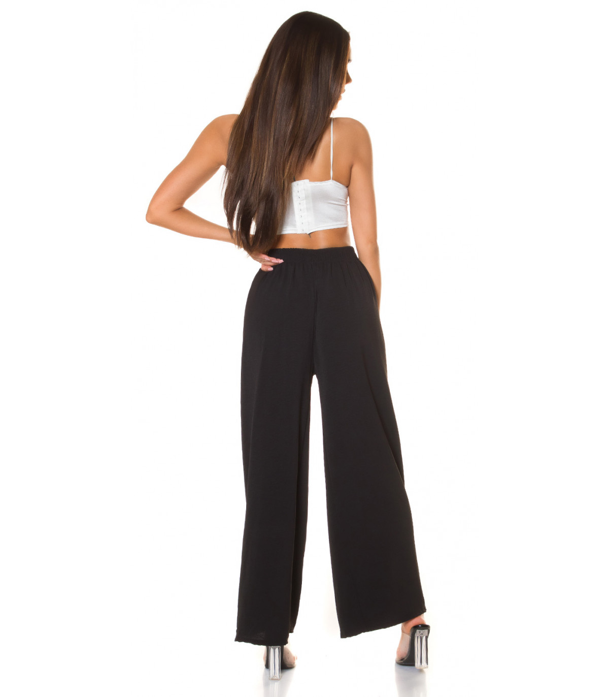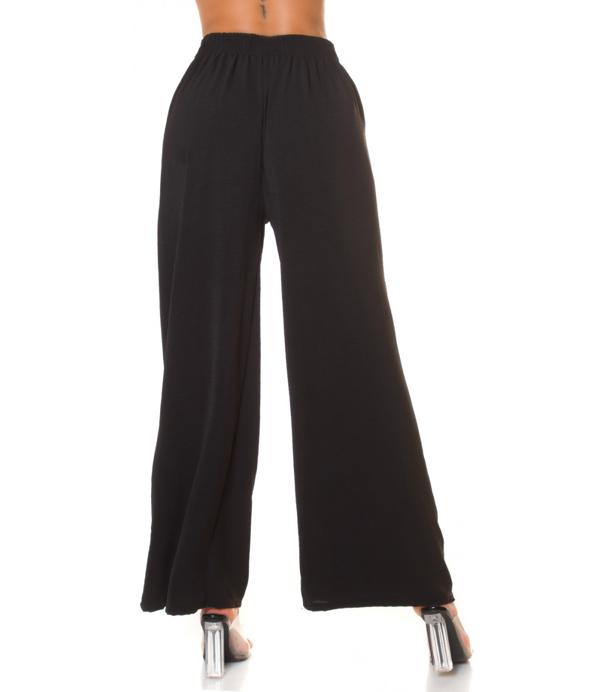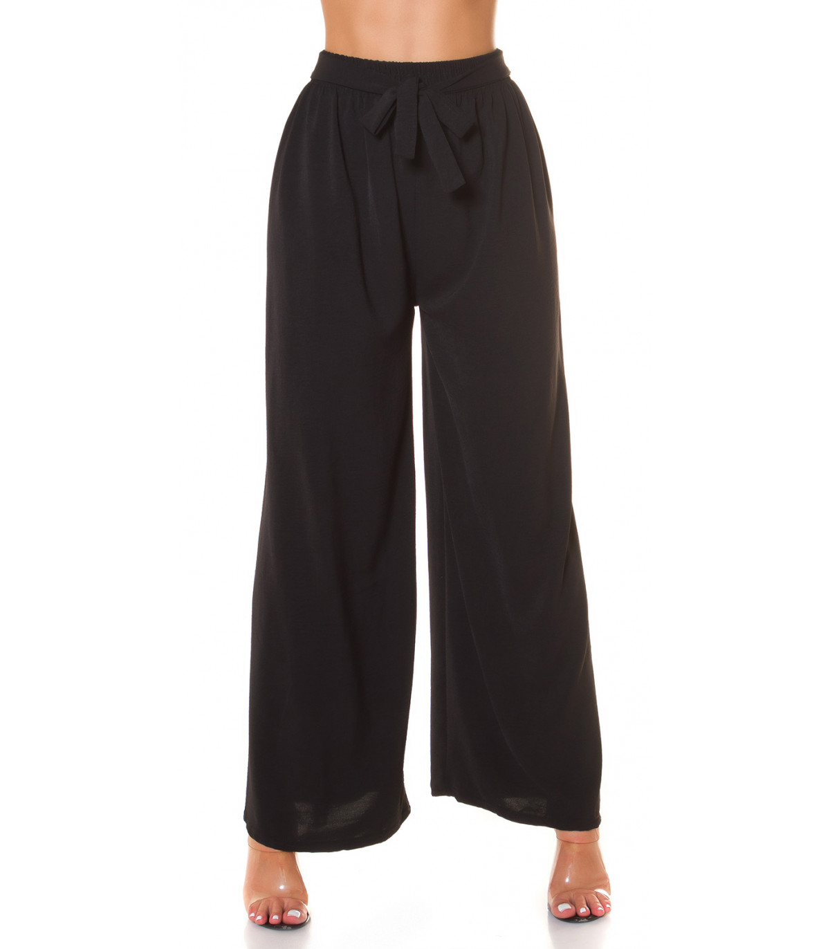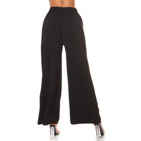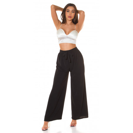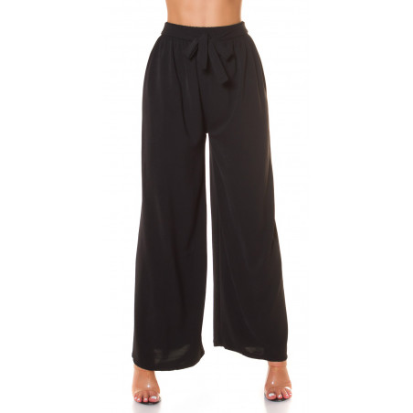 Koucla mustat leveälahkeiset kesähousut vyönauhoilla