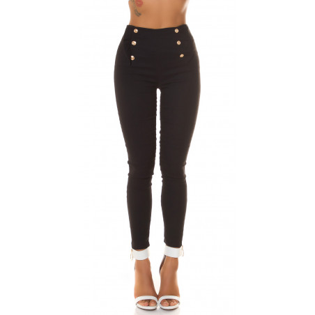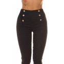 Koucla mustat nappi- ja röyhelökoristeiset treggingsit