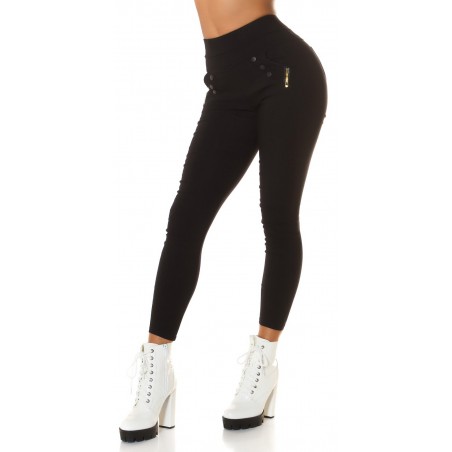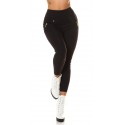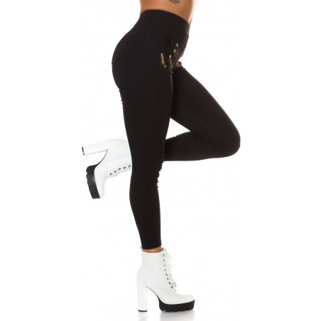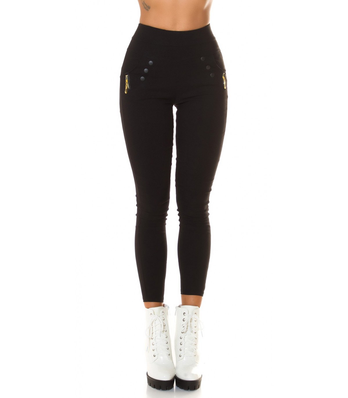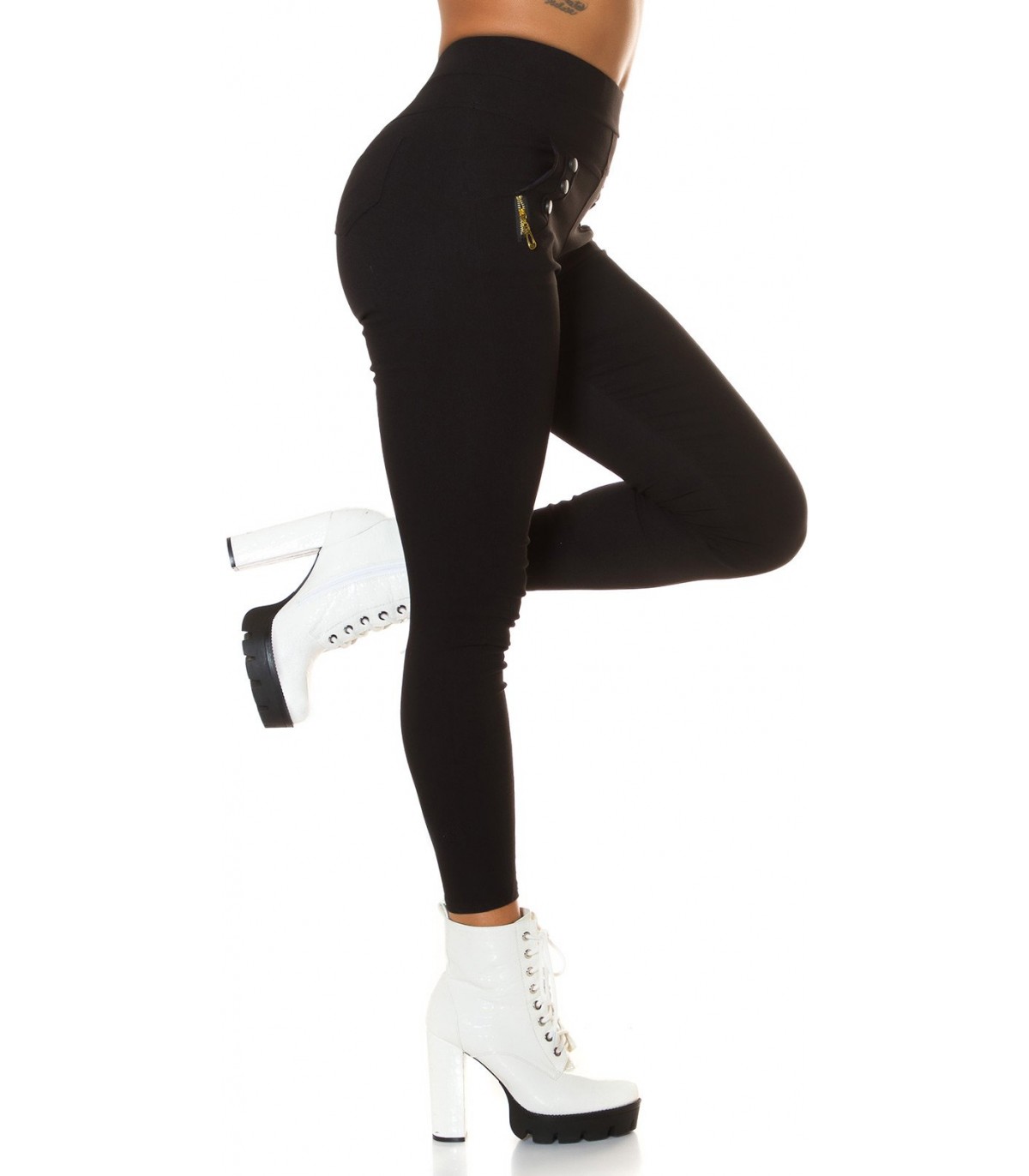Mustat korkeavyötäröiset treggingsit taskuilla ja koristeilla