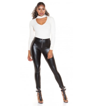Mustat vetoketjulliset korkeavyötäröiset wetlook housut