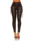 Koucla mustat nyörikoristeiset wetlook treggingsit