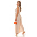 Koucla beige vekkilahkeinen v-jumpsuit vyöllä