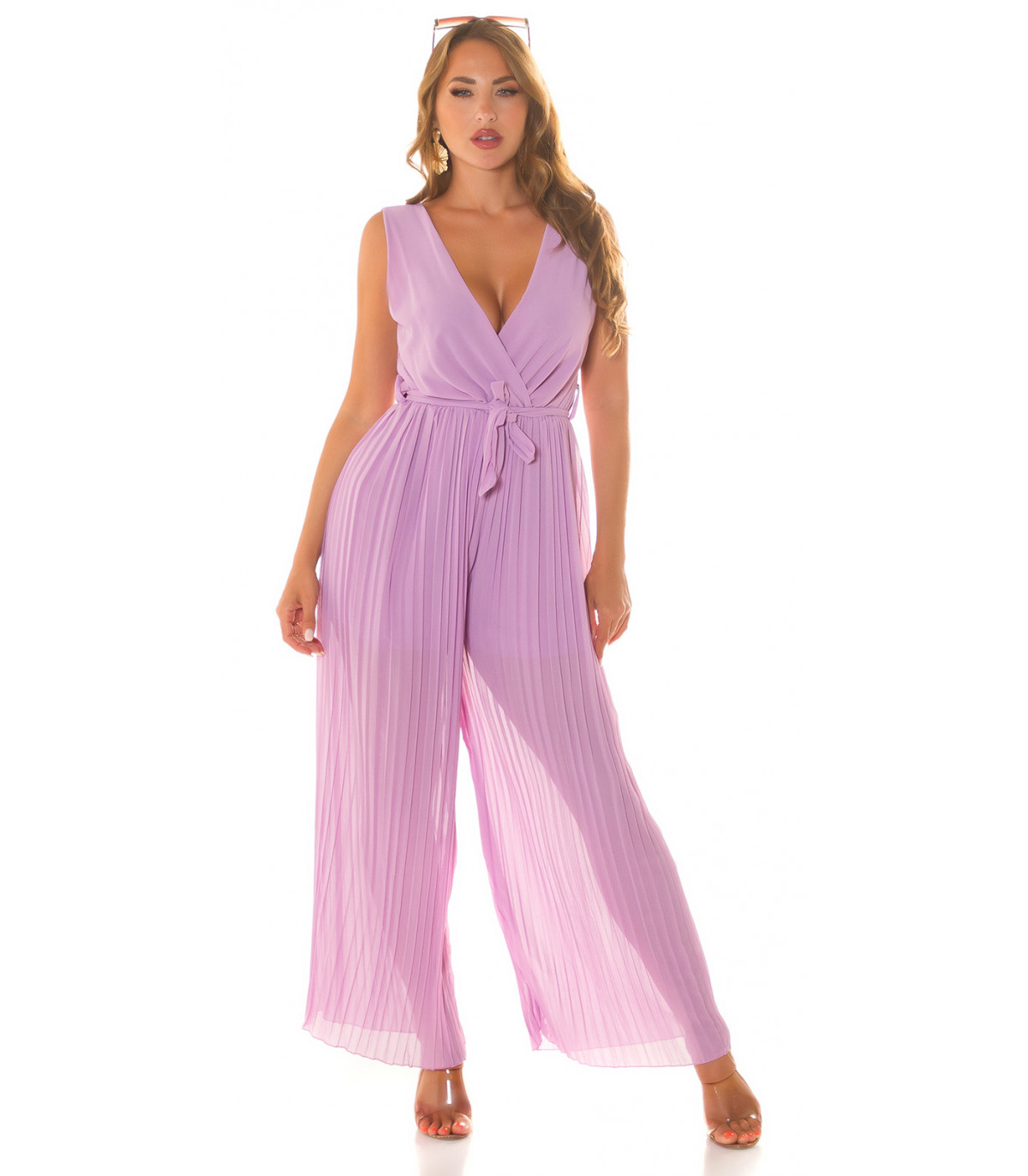 Koucla lila vekkilahkeinen v-jumpsuit vyöllä