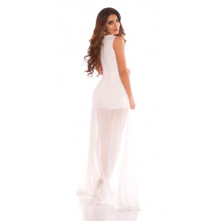 Koucla valkoinen nyörikoristeinen high low -playsuitmekko