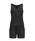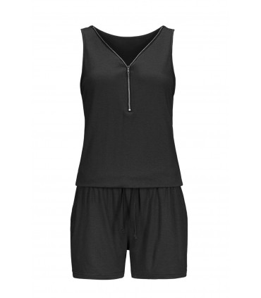 Musta vetoketjukoristeinen väljä romper. Emme saa tuotetta näillä näkymin enää lisää.