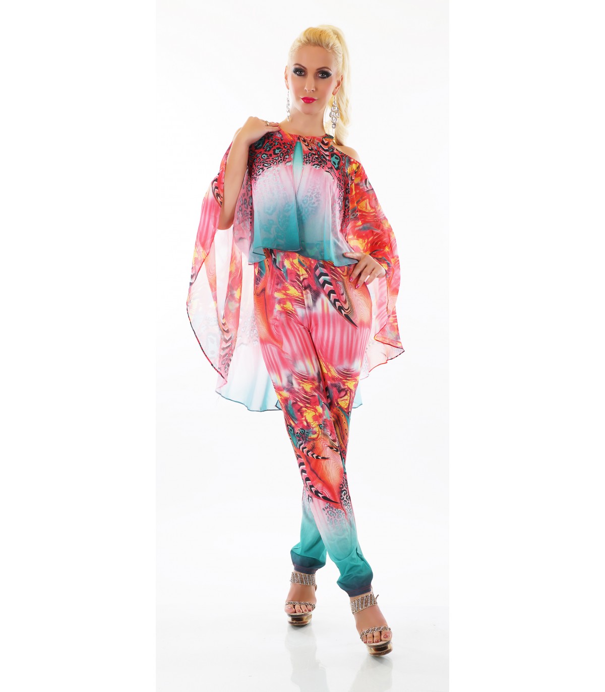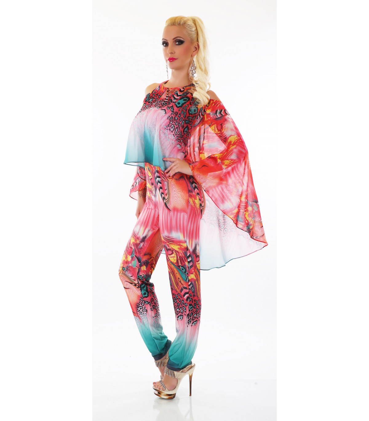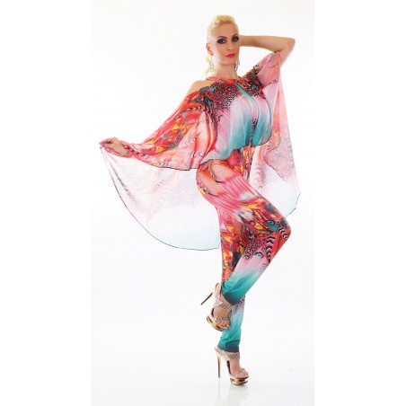 Punainen printtikuvioinen jumpsuit liehuksella [LÖYTÖ]