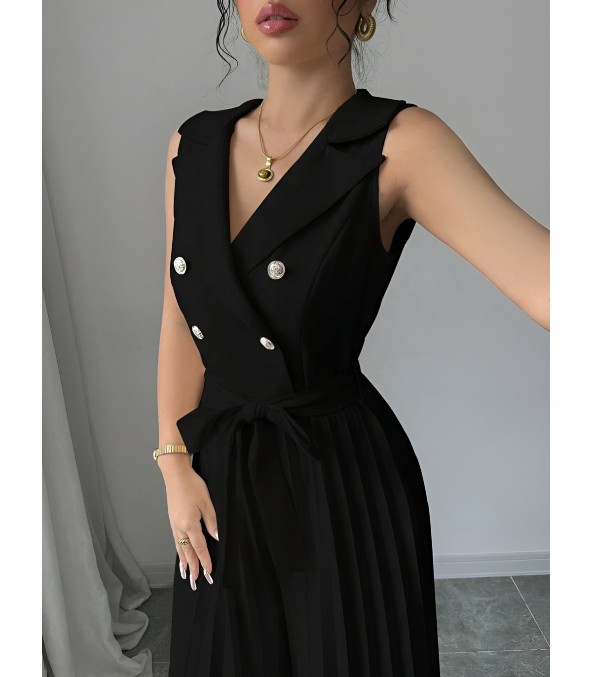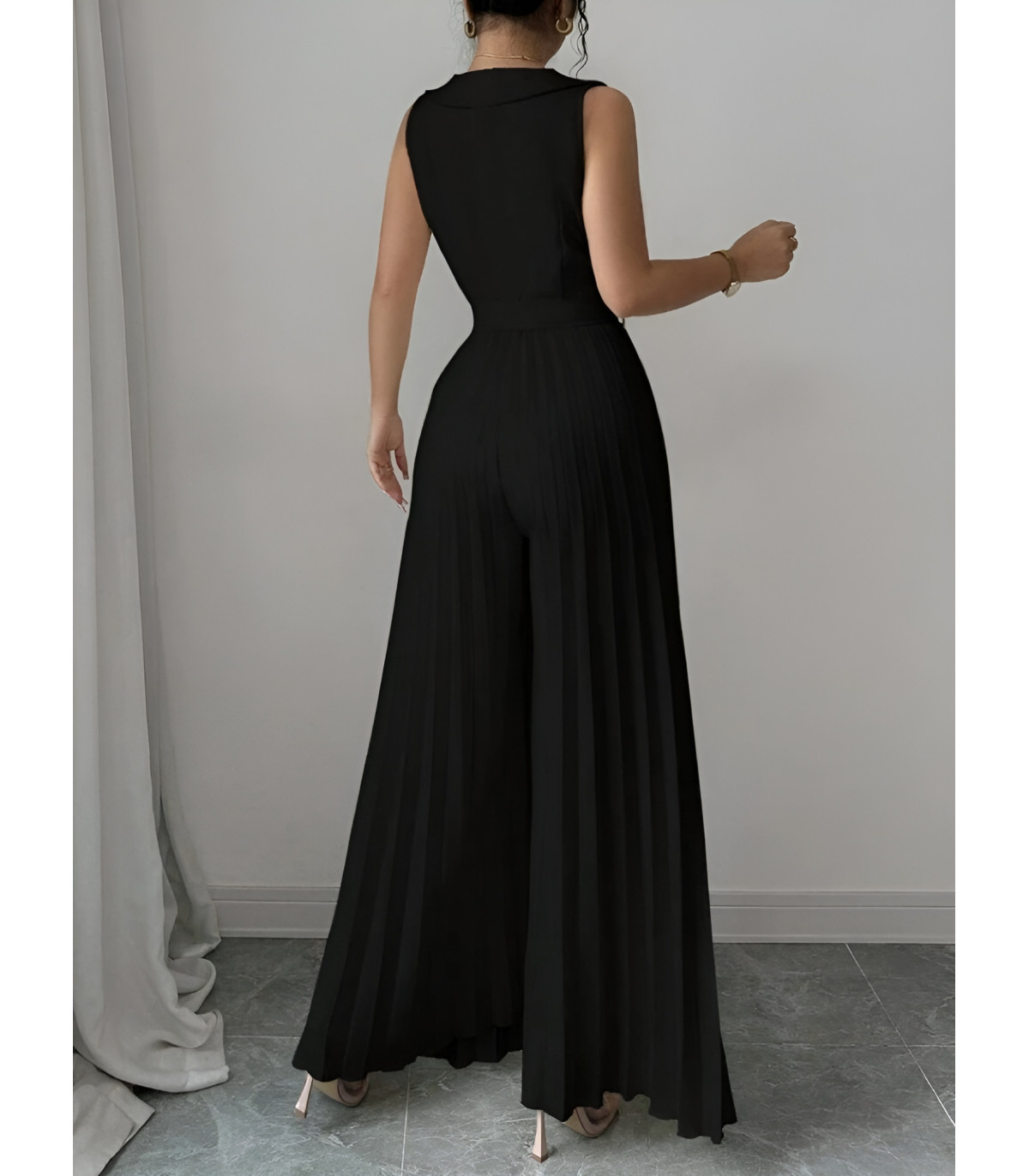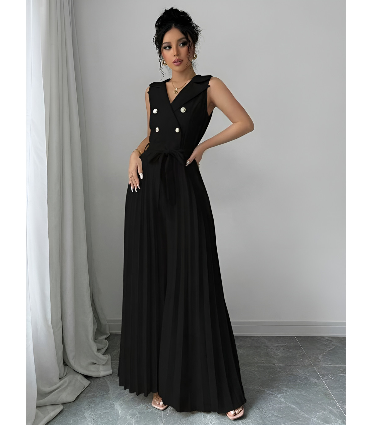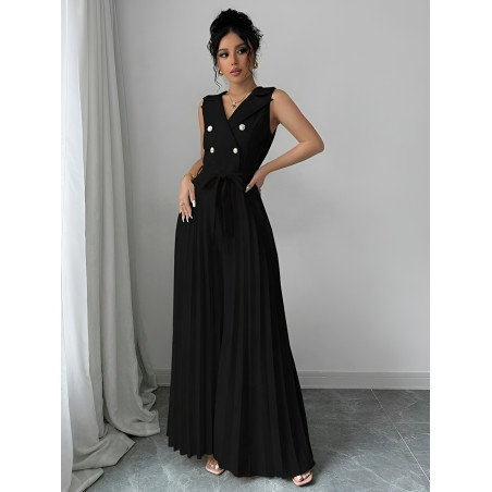 Elegantti musta jumpsuit napeilla ja vekkilahkeilla - Tyylikäs haalariasu eri tilanteisiin