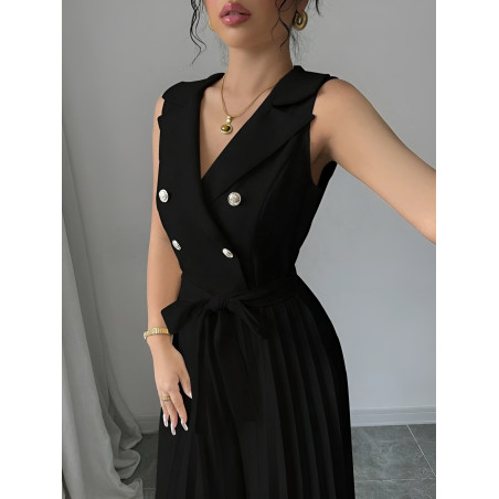 Kun haussasi on monikäyttöinen elegantti vaate, joka kestää aikaa, on tämä musta vekkilahkeinen jumpsuit vyöllä täydellinen vaihtoehto. Täyden kympin jumpsuit vie sydämesi ensinäkemältä. Tässä asussa erotut eduksesi erilaisissa juhlissa ja fiineissä tilaisuuksissa. Yksinkertaiset mutta hienot yksityiskohdat tekevät vaatteesta täydellisen. Tämä sopii loistavasti erilaisiin juhliin, edustustapahtumiin, kaupungille kuin tyylikkäille treffeille. Jos kaipaat vaihtelua tyyliin, kokeile asuun erilaista vyötä tai värikkäitä kenkiä/laukkua.