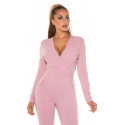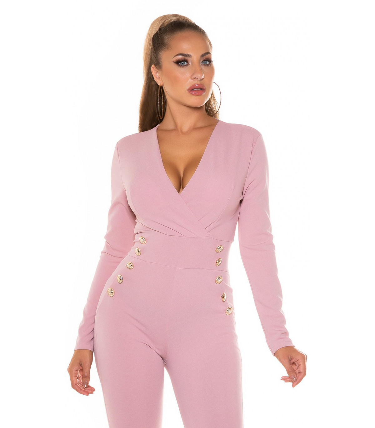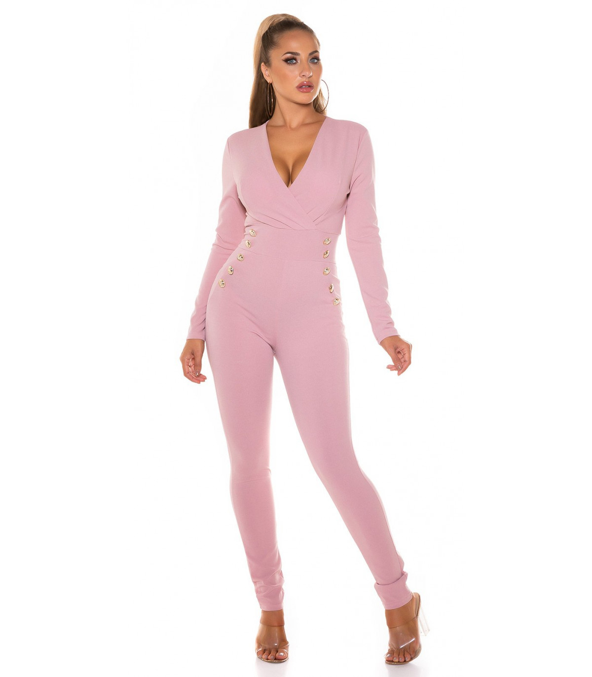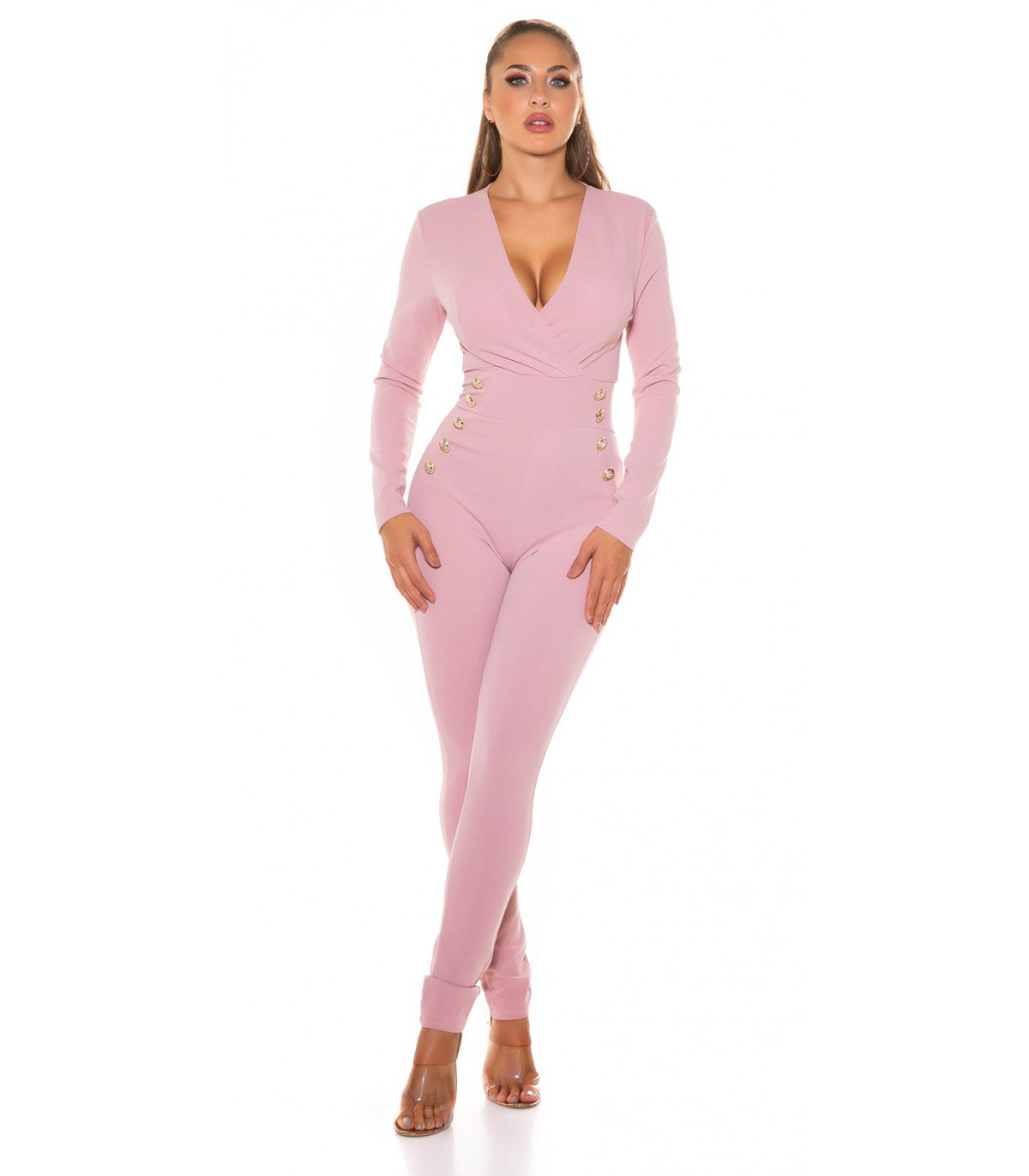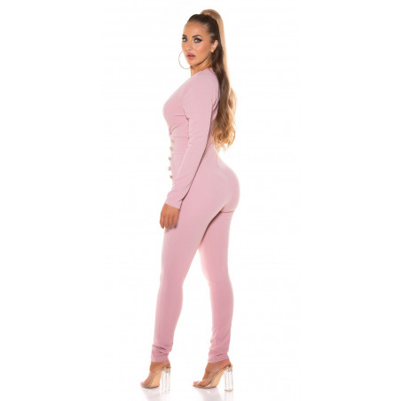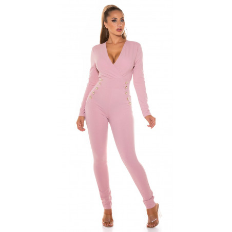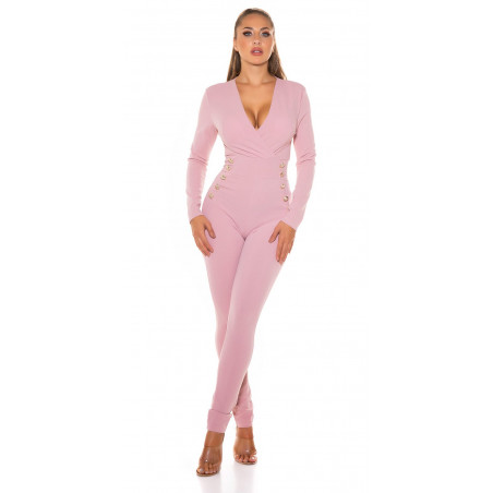 Vaaleanpunainen pitkähihainen jumpsuit napeilla - elegantti jumpsuit juhliin