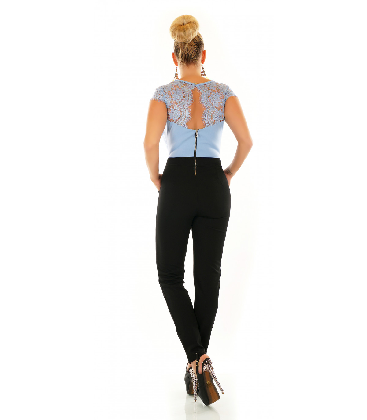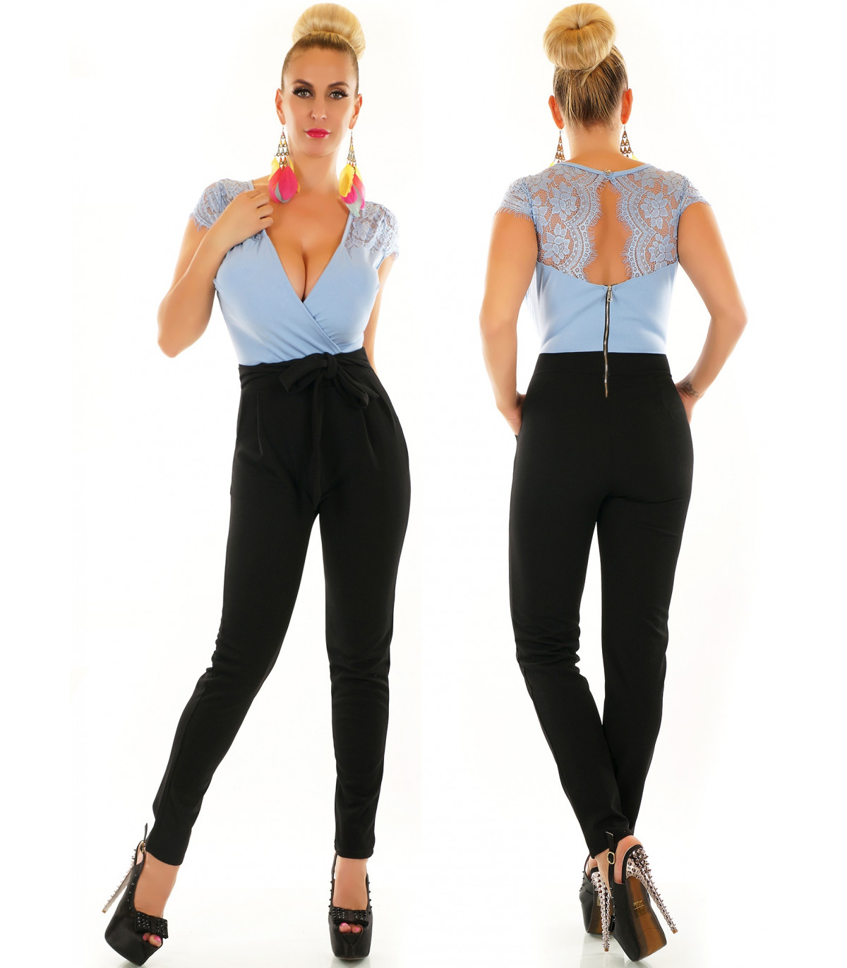 Vaaleansinimusta pitsikoristeinen v-jumpsuit