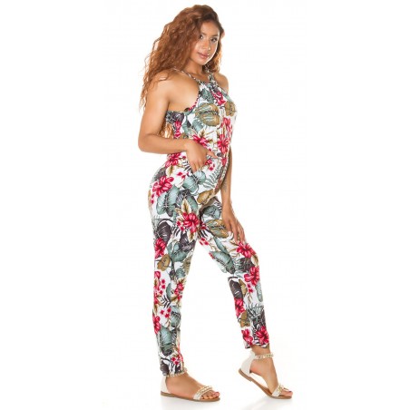 Valkoinen kukka- ja lehtikuvioinen jumpsuit