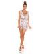 Valkoinen kukkakuvioinen wrap-look v-playsuit
