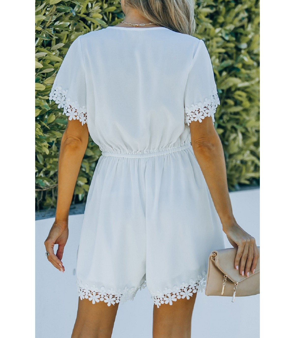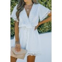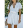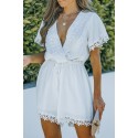 Valkoinen kukkapitsikirjailtu v-playsuit