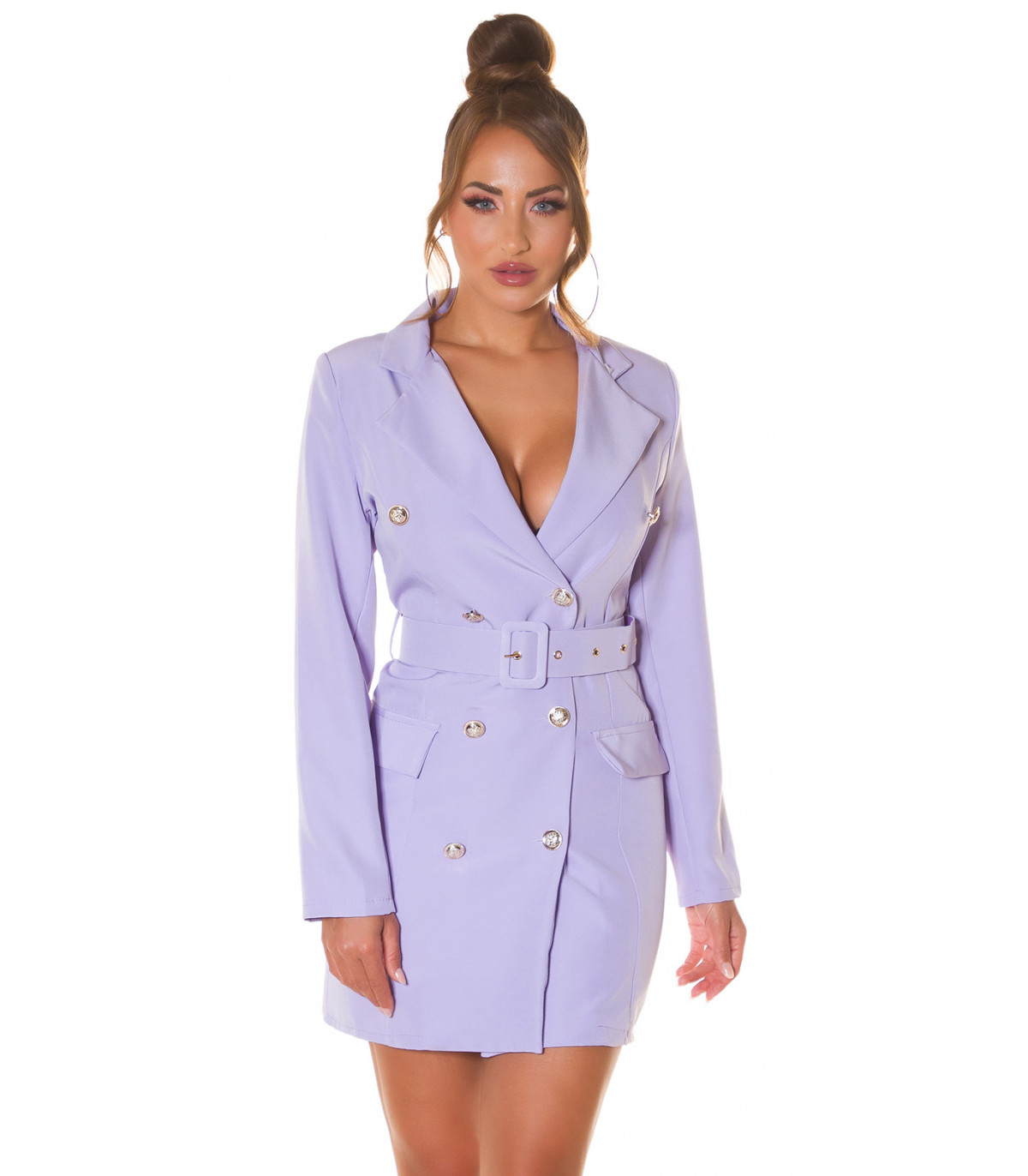 Elegantti lila takkimekko tuo asukokonaisuuteesi eleganssia ja naisellisuutta. Pitkähihainen takkimekko vyöllä näyttää upealta ja sopii täydellisesti erilaisiin tilanteisiin.