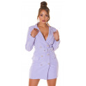 Tyylikäs lila pitkähihainen nappikoristeinen v-bleiserimekko vyöllä - kun haluat erottua eduksesi