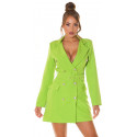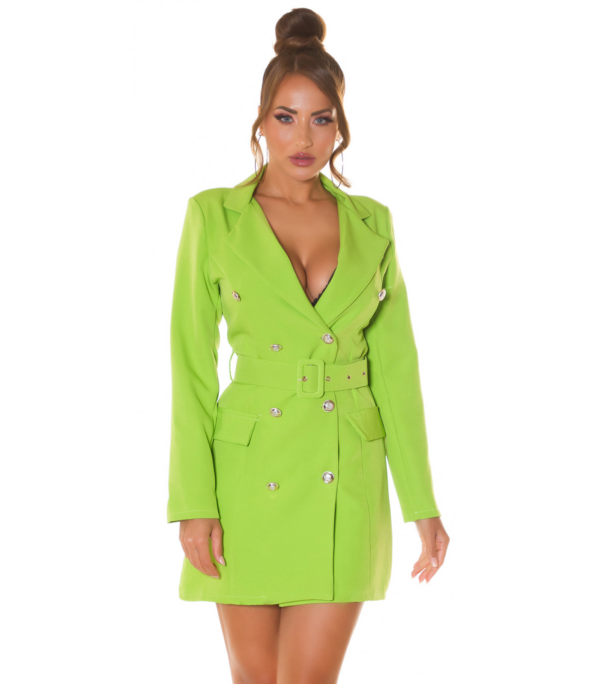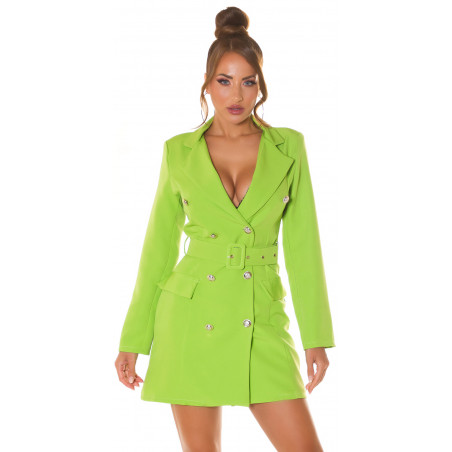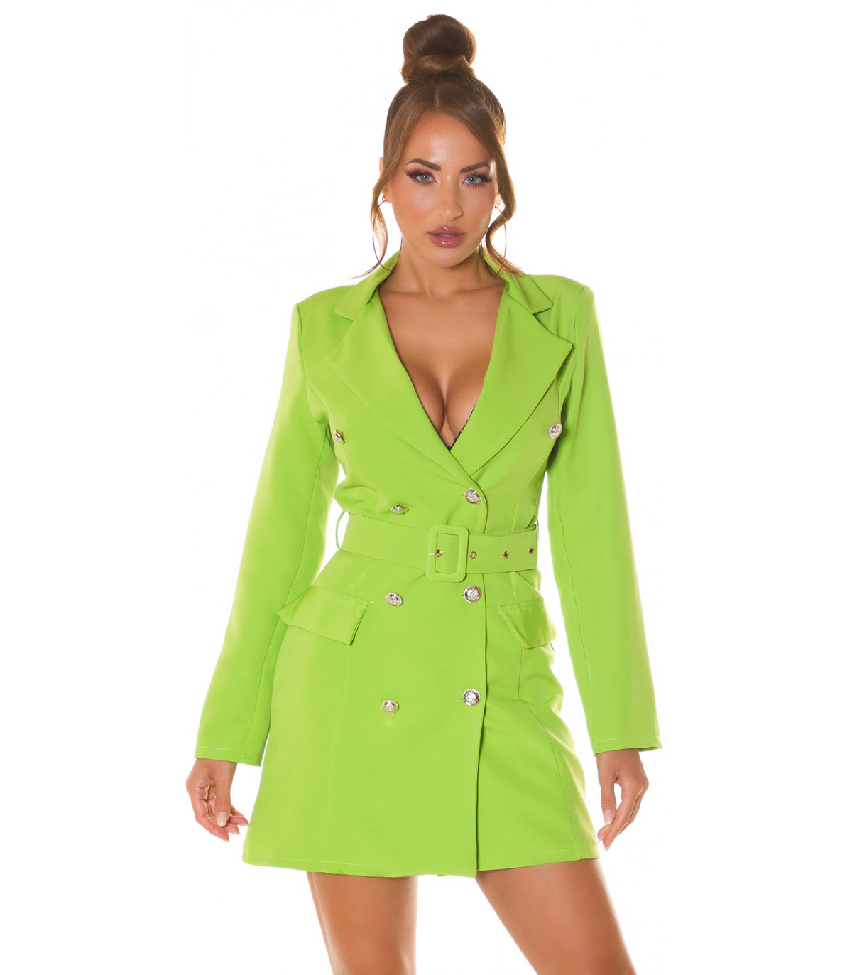 Tyylikäs limenvihreä pitkähihainen nappikoristeinen v-bleiserimekko vyöllä - kun haluat erottua eduksesi