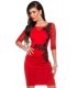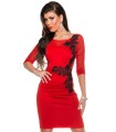 Punainen 3/4-hihainen koristekirjailtu mesh-mekko.