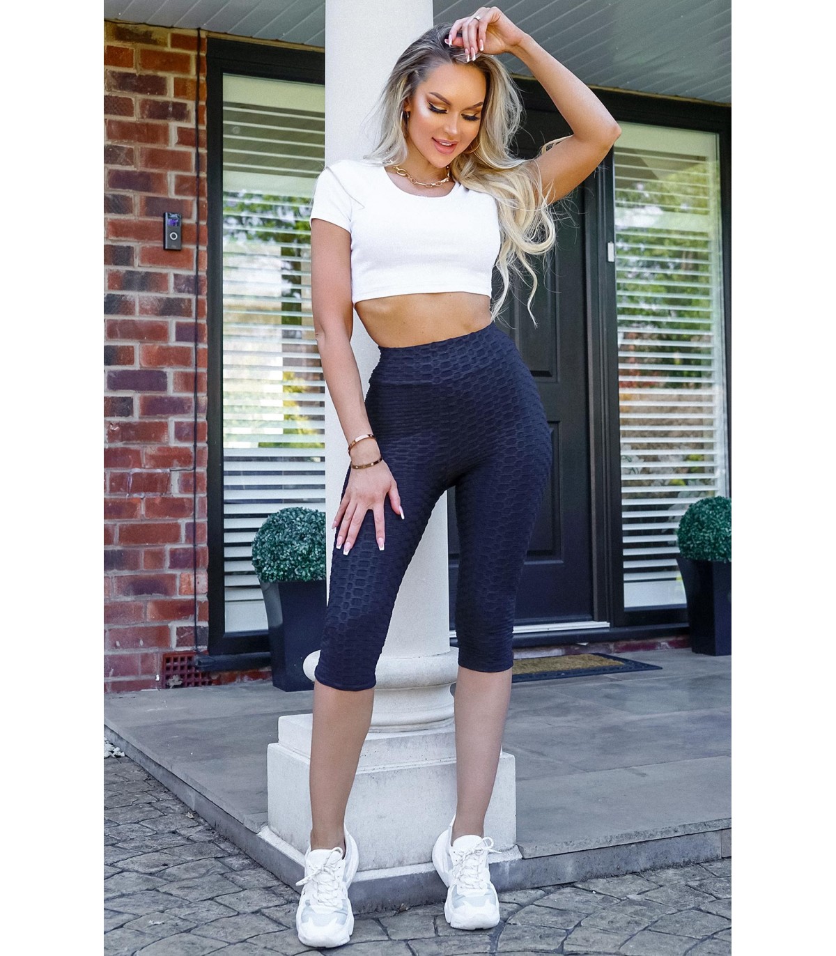 Mustat korkeavyötäröiset caprimittaiset kuplaleggingsit. Valmistettu Euroopassa.