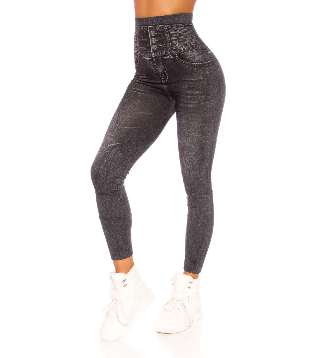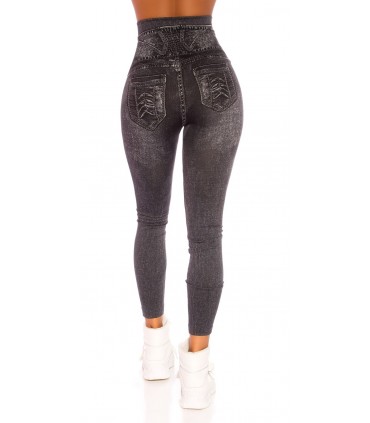 Mustat korkeavyötäröiset resorikoristeiset farkkuleggingsit