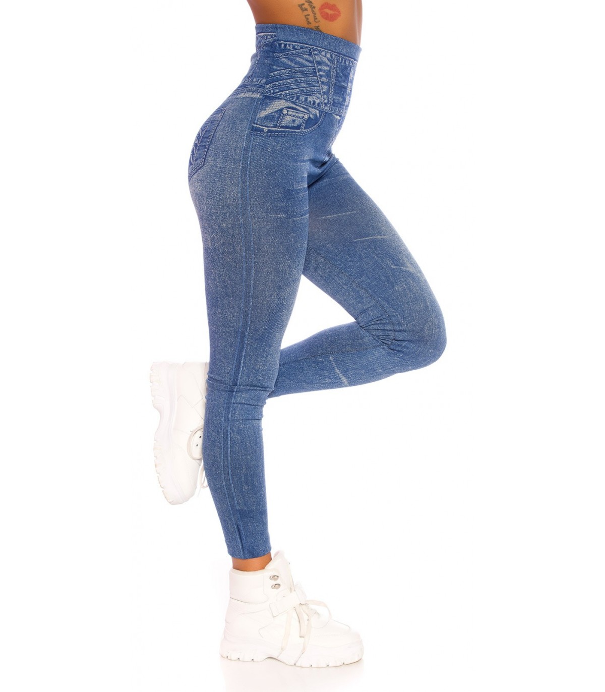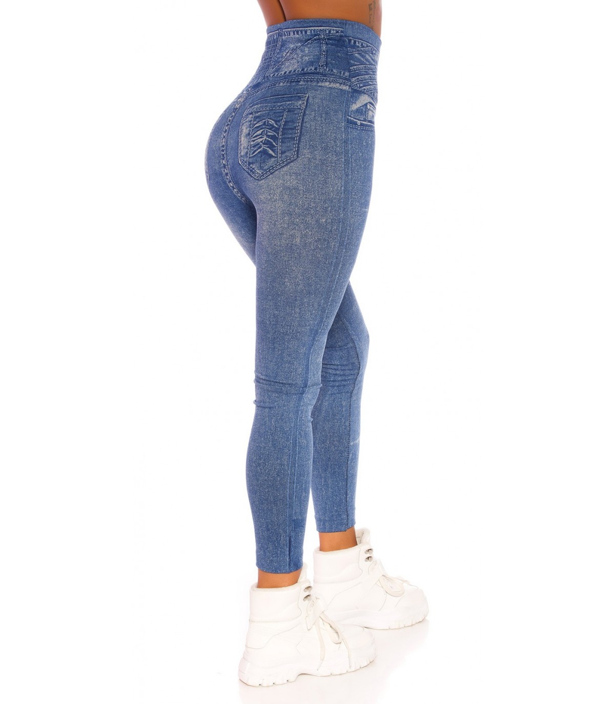 Plus de details Heti varastossa!Vaaleansiniset korkeavyötäröiset resorikoristeiset farkkuleggingsit