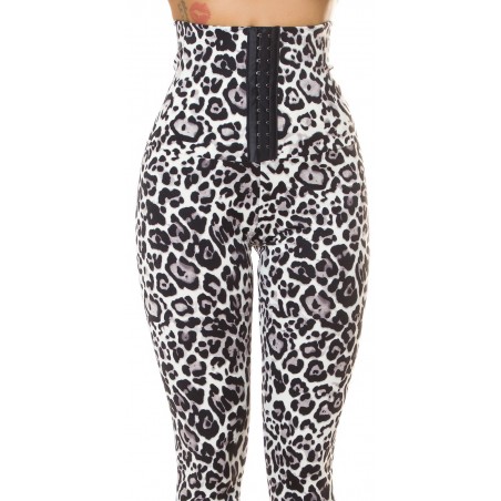 Harmaat leokuvioiset korkeavyötäröiset leggingsit hakasilla