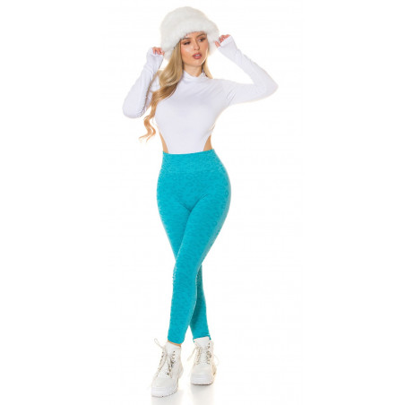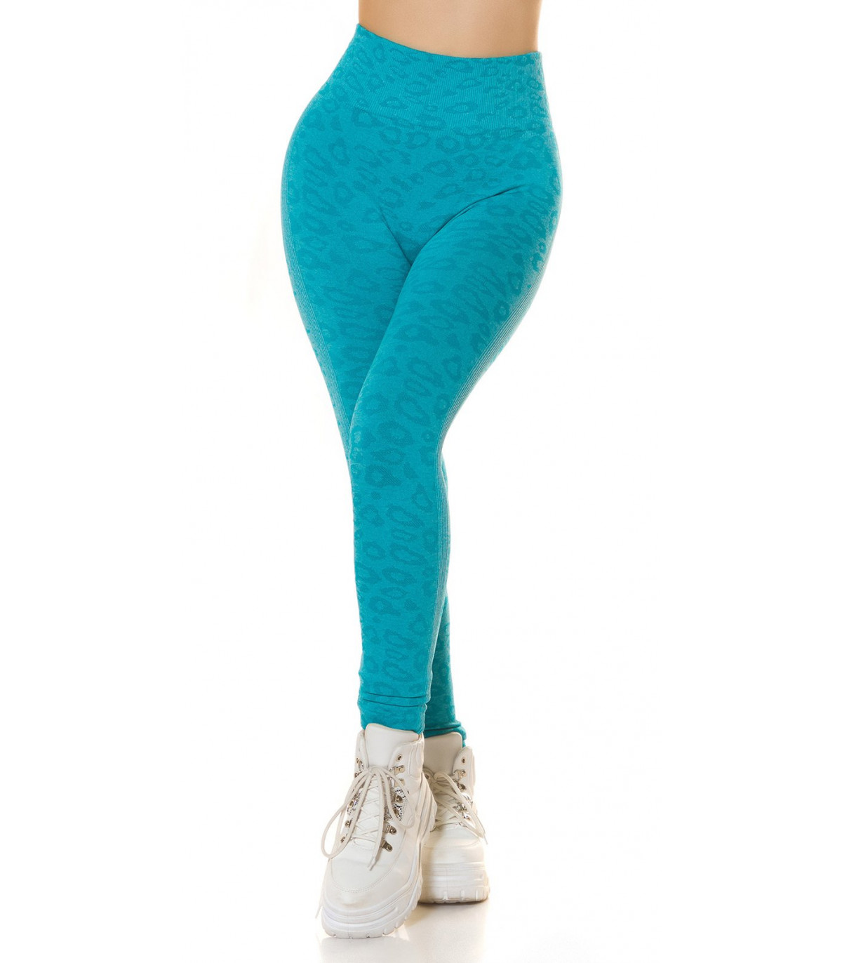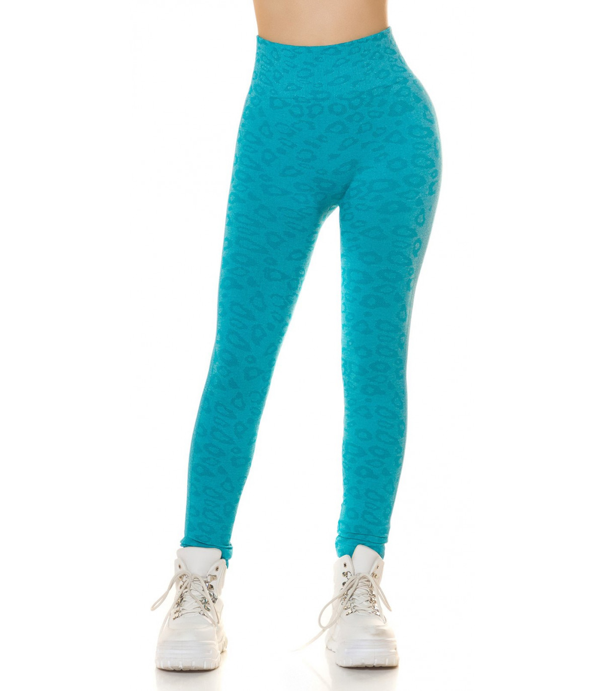 Näyttävät turkoosit korkeavyötäröiset treenitrikoot - leopardikuvioiset pepputrikoot itsevarmoille naisille