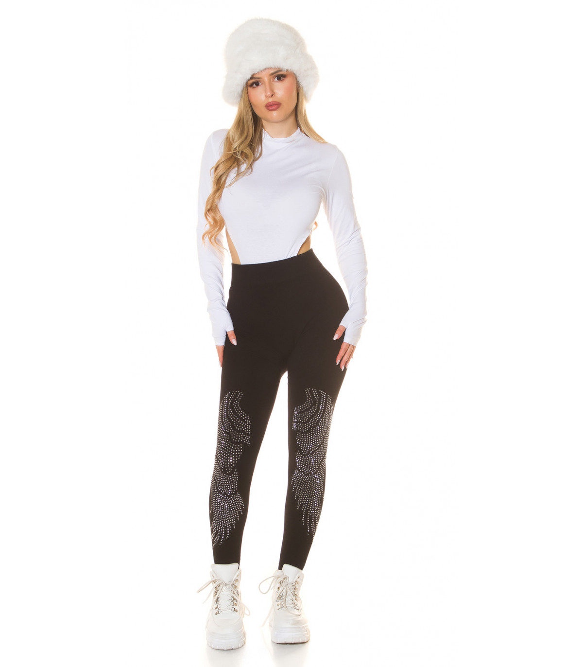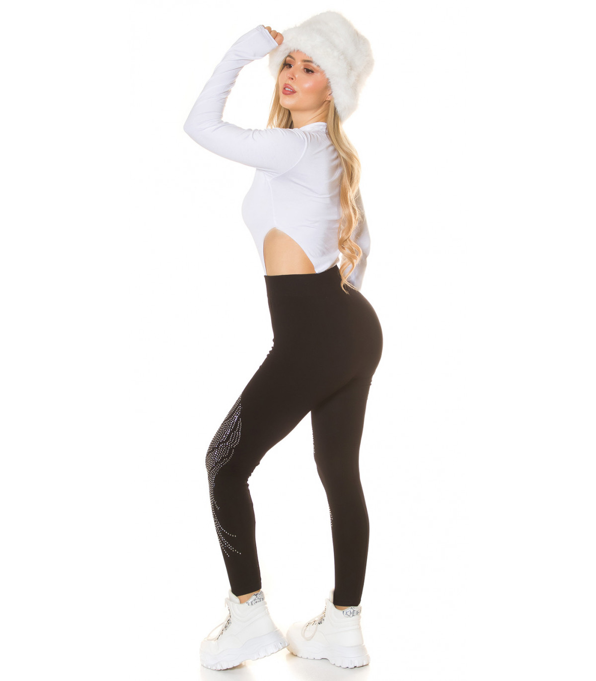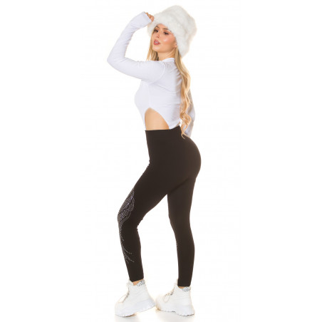 Haussa täydelliset mustat legginsit, jotka sekä tuntuvat että näyttävät hyvältä? Nämä strassikoristeiset mustat leggingsit ovat juuri sitä, mitä tarvitset. Strassileggingsit tarjoavat imartelevaa istuvuutta ja näyttävyyttä jokapäiväiseen pukeutumiseen. Mukavat mustat leggingsit ovat vaatekaapin luottovaate, jotka tulisi löytyä jokaisen naisen vaatekaapista. Täydelliset leggingsit tunikoiden ja paitamekkojen kanssa.