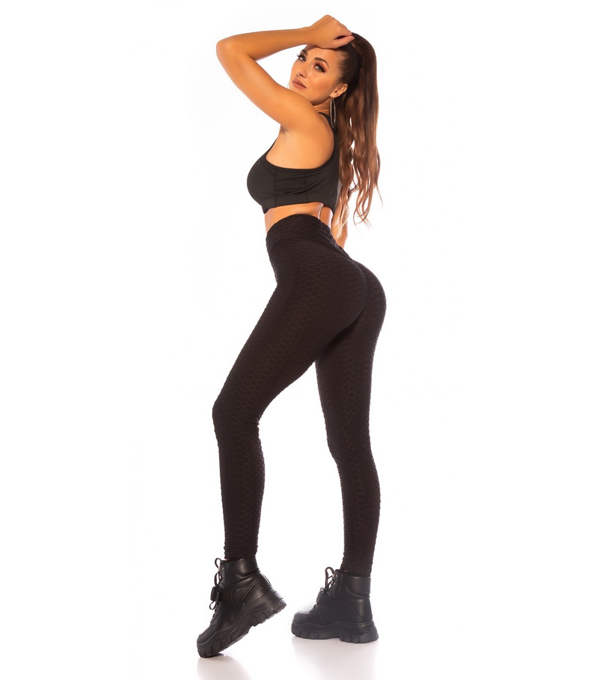 Mustat korkeavyötäröiset push up -treenitrikoot