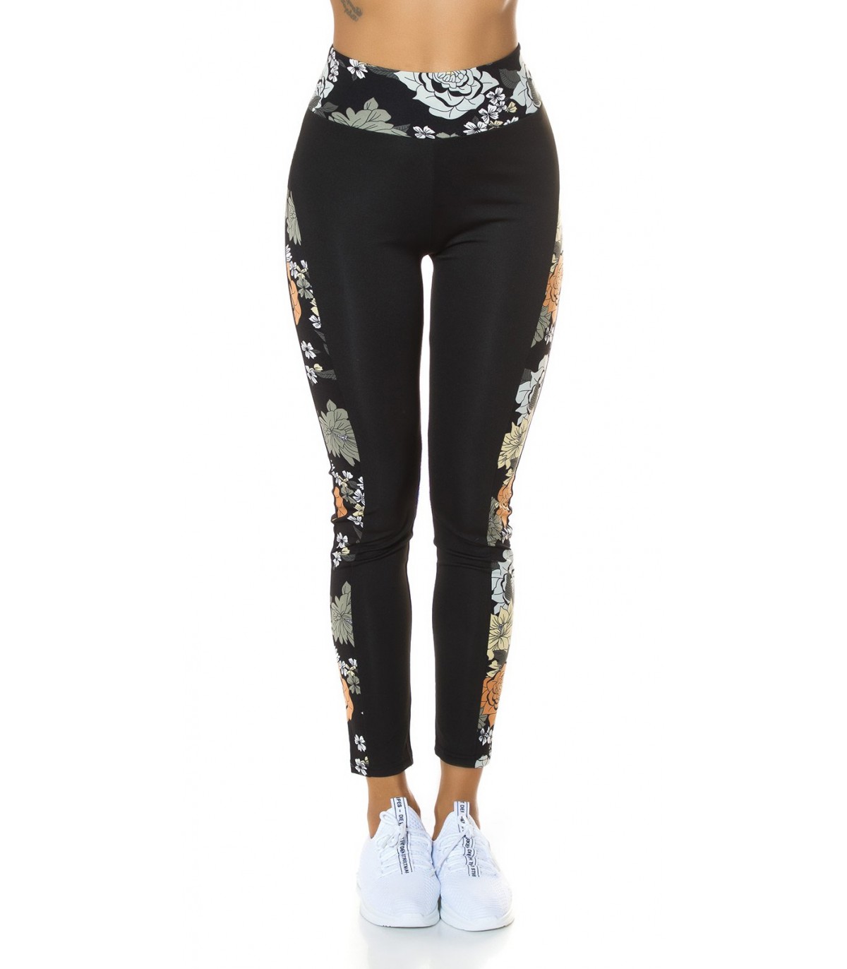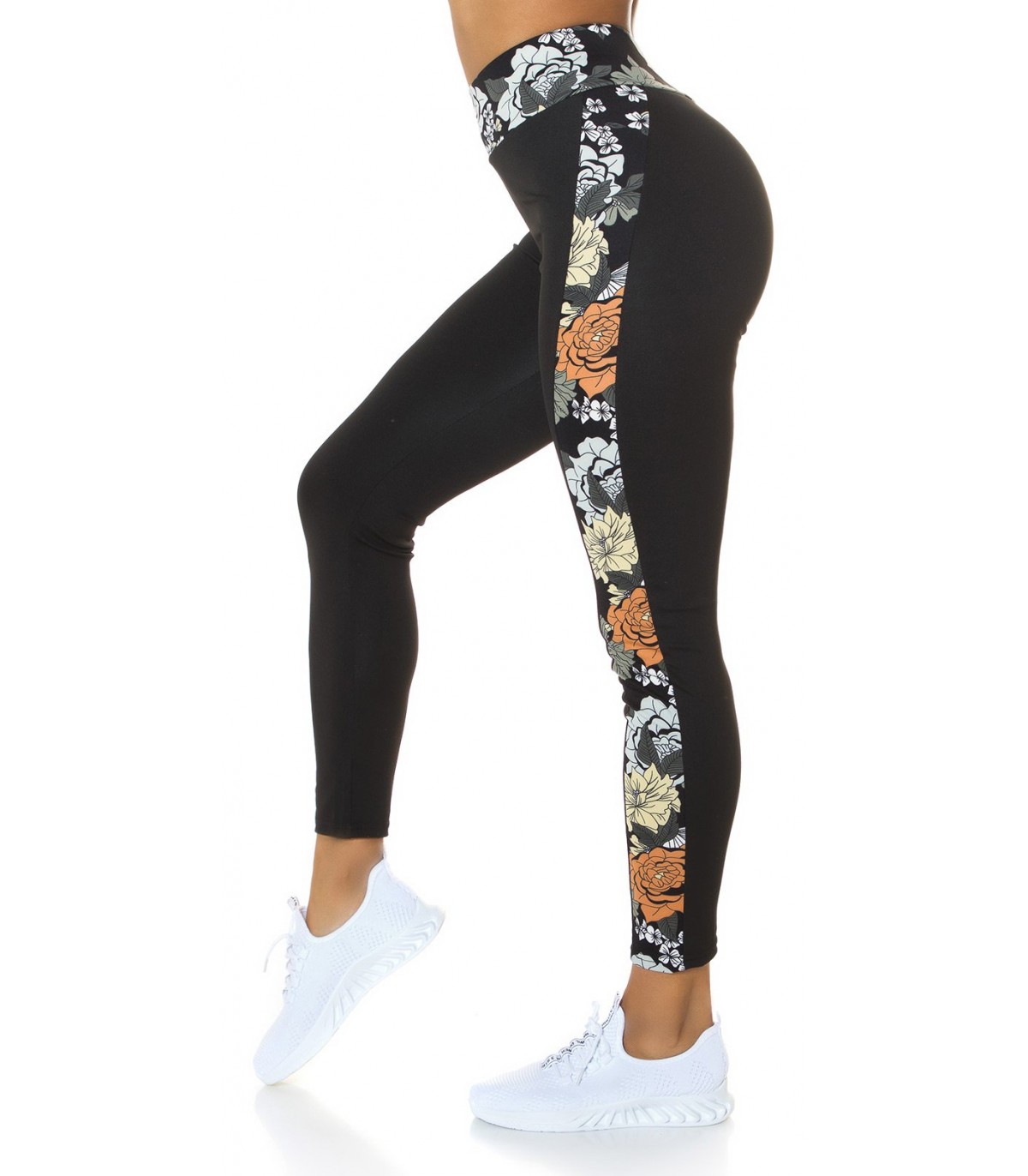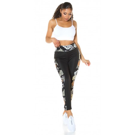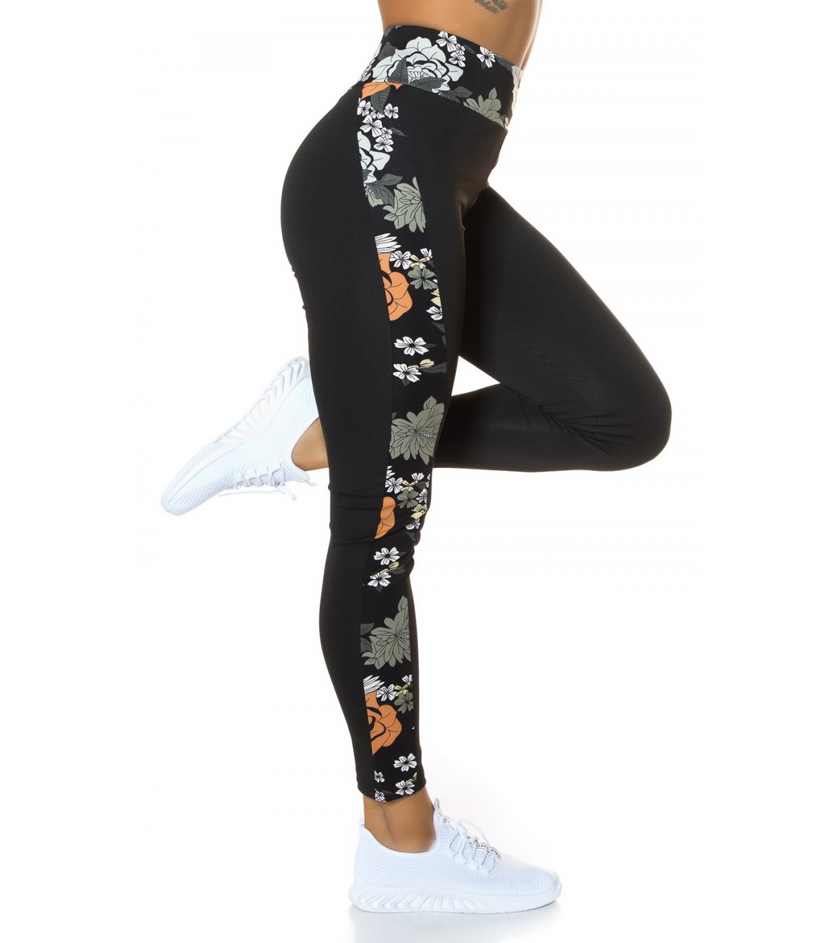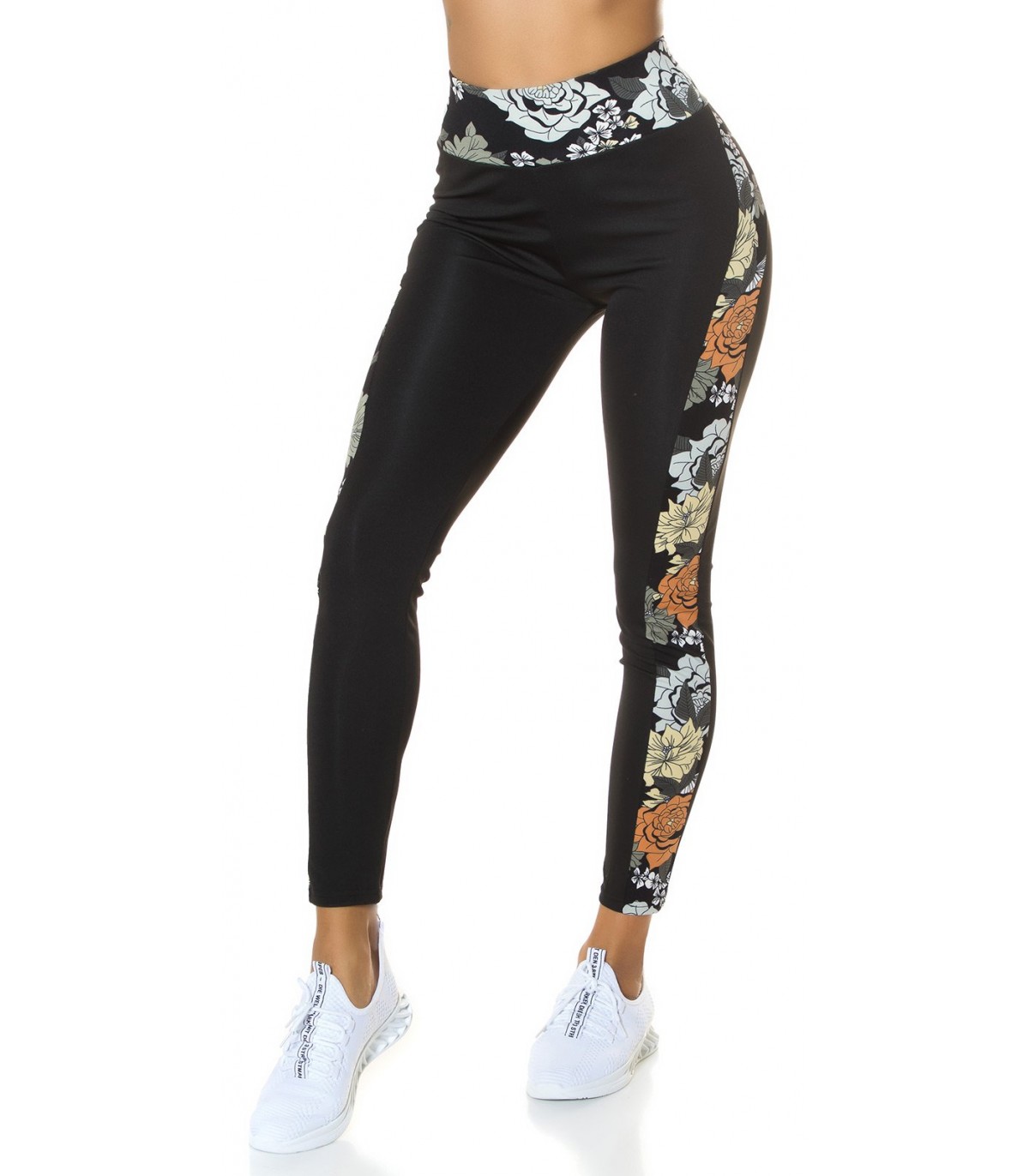Mustat leggingsit kukkakuvioisilla raidoilla
