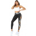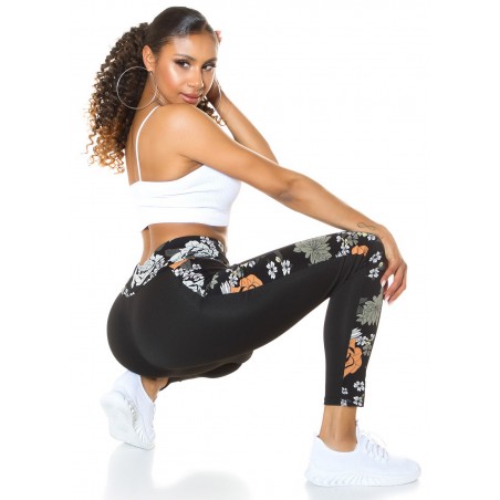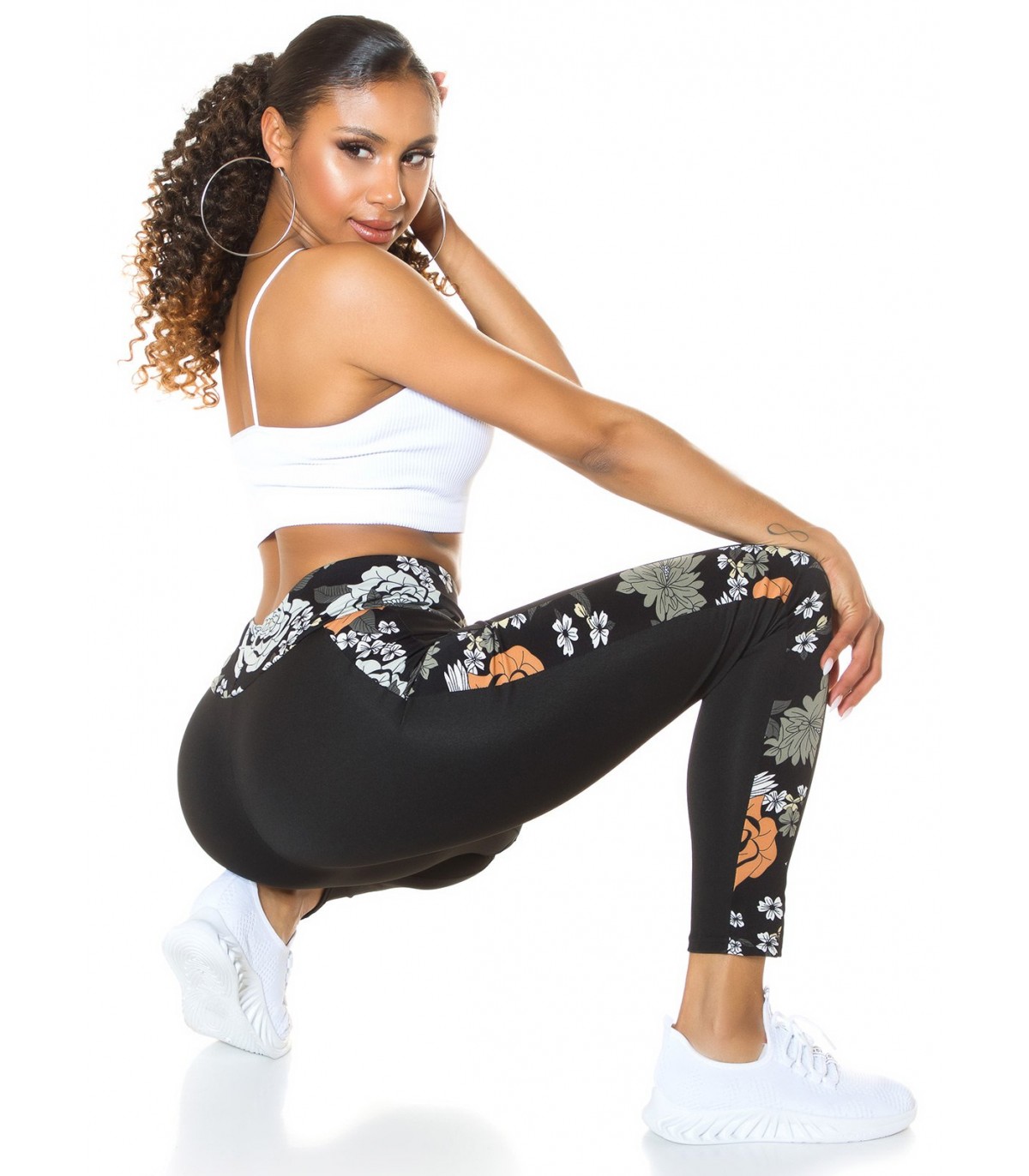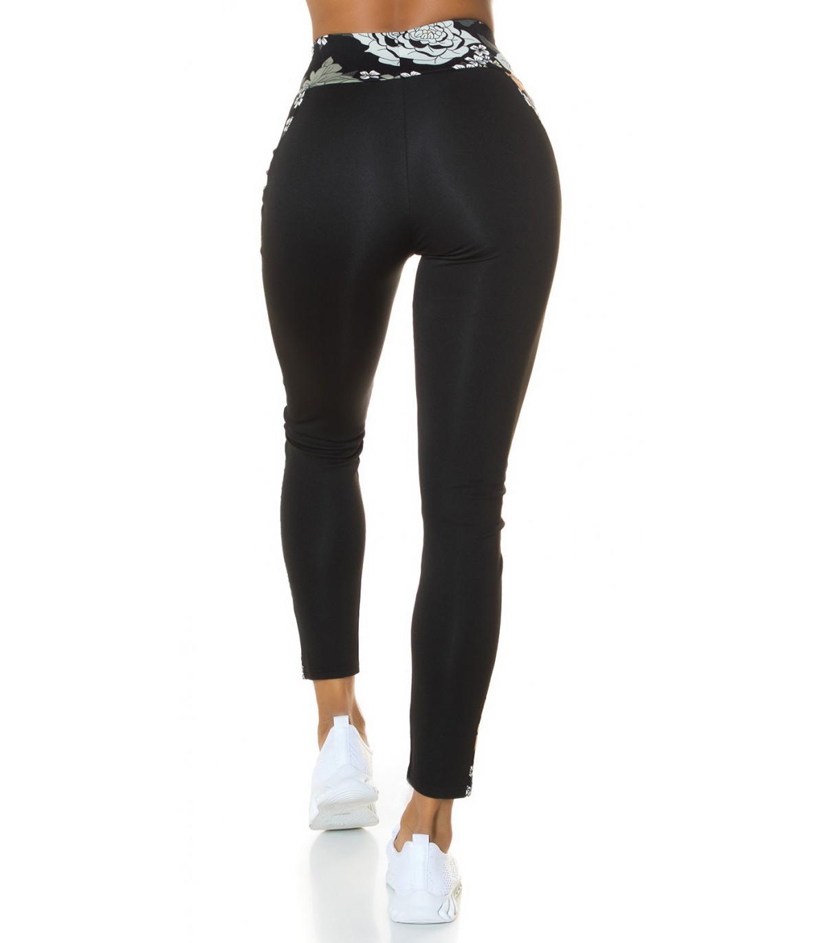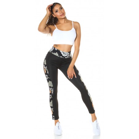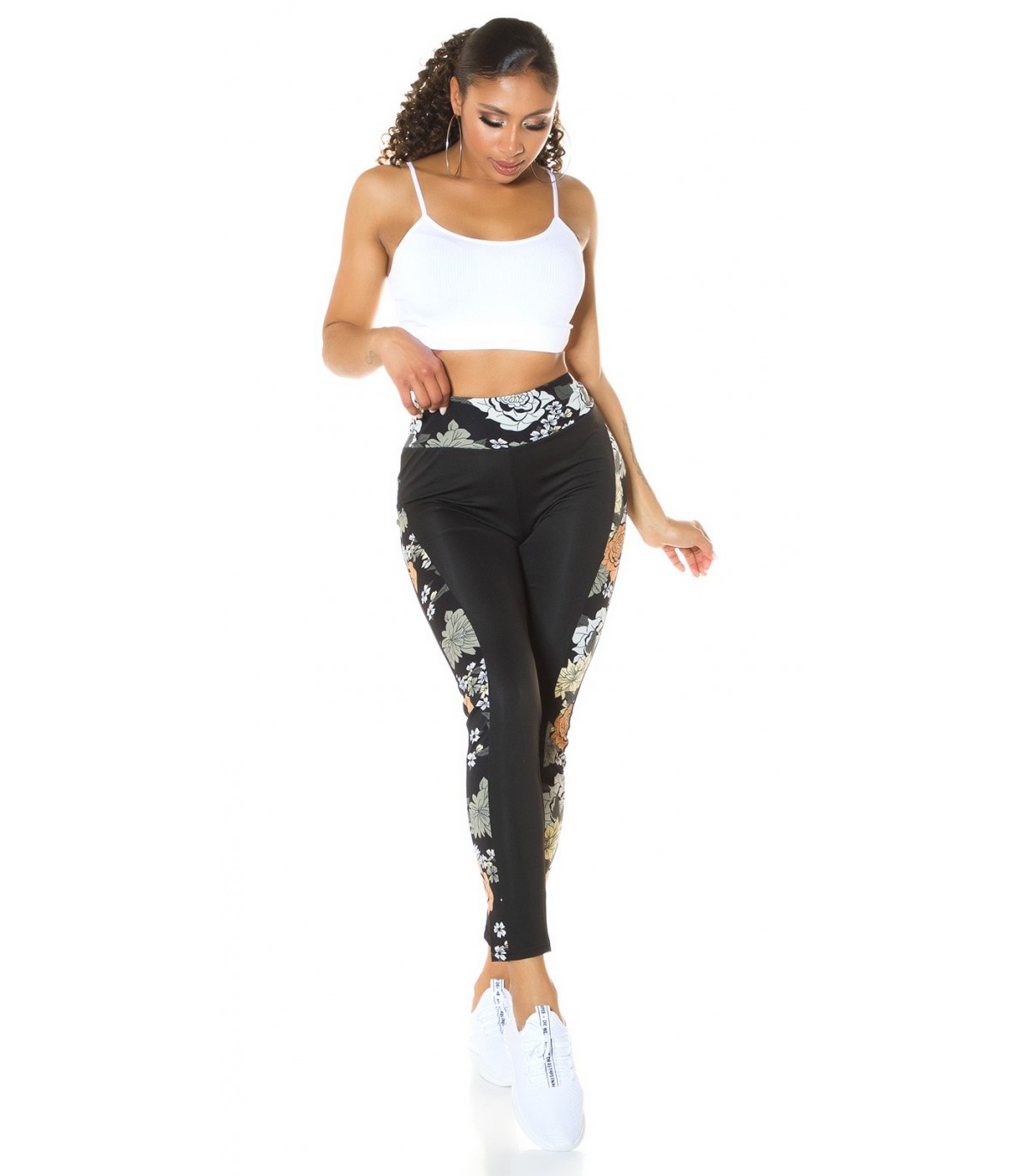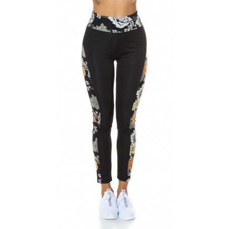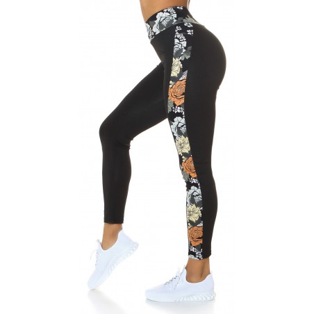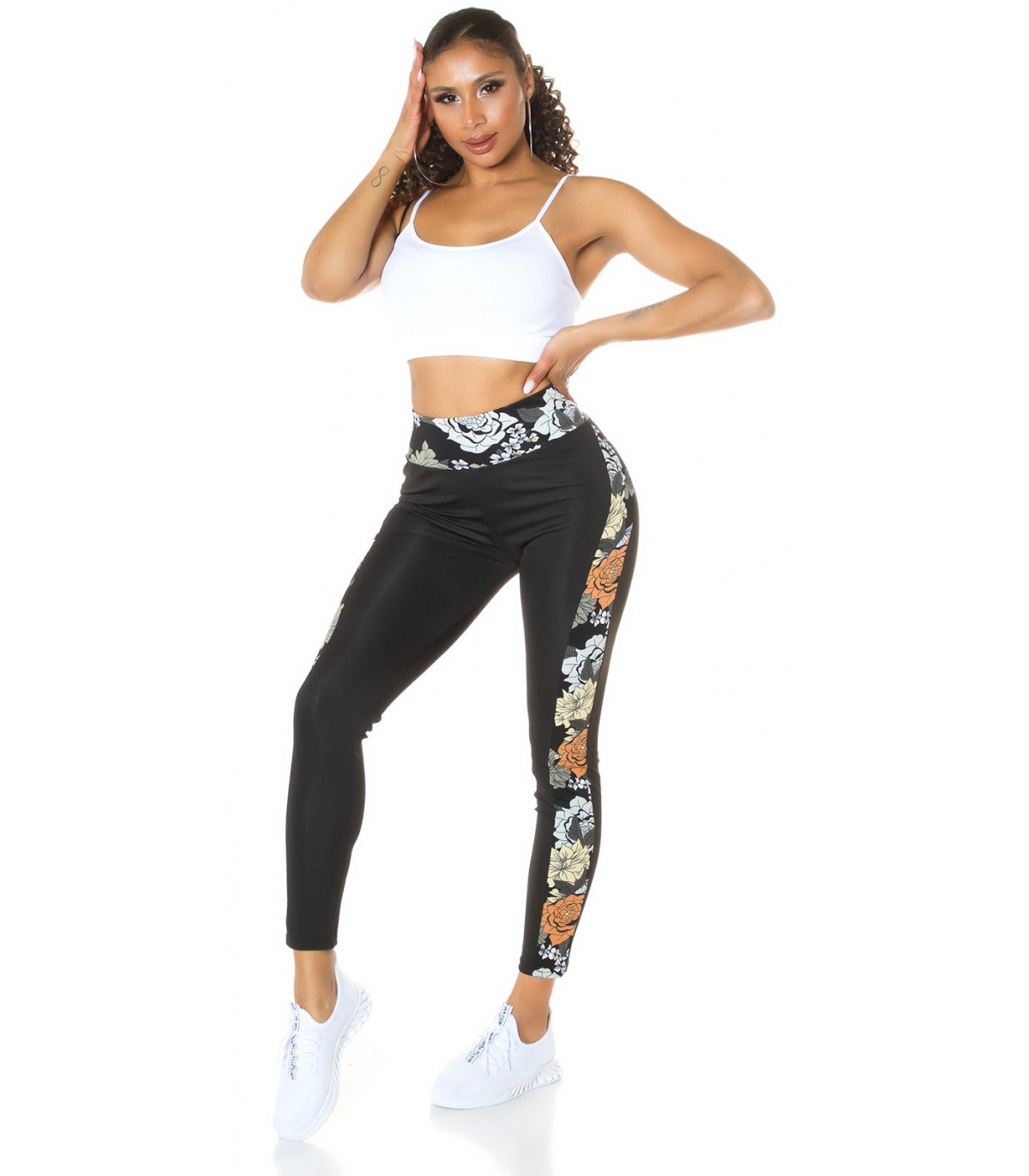 Mustat leggingsit kukkakuvioisilla raidoilla