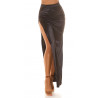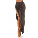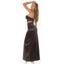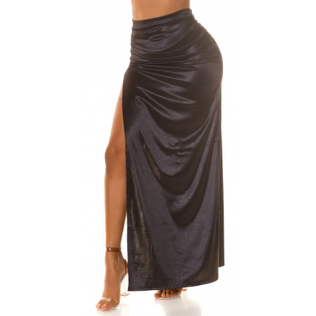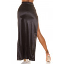 Upea musta satiinilook maksihame halkiolla erottuu edukseen. Näyttävä vatsan kohdalta rypytetty korkeavyötäröinen maksihame pääsee parhaiten oikeuksiinsa lyhyemmän yläosan tai bodyn kanssa. Tyylikäs musta pitkä juhlahame sopii loistavasti erilaisiin juhliin ja tapahtumiin. Yläosaa vaihtamalla saat luotua lukuisia eri tilaisuuksiin sopivia asukokonaisuuksia. Korkea halkio lisää seksikkyyttä tyyliin. Takana piilovetoketju.