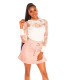 Koucla vaaleanpunainen korkeavyötäröinen röyhelötekonahkahame vyöllä