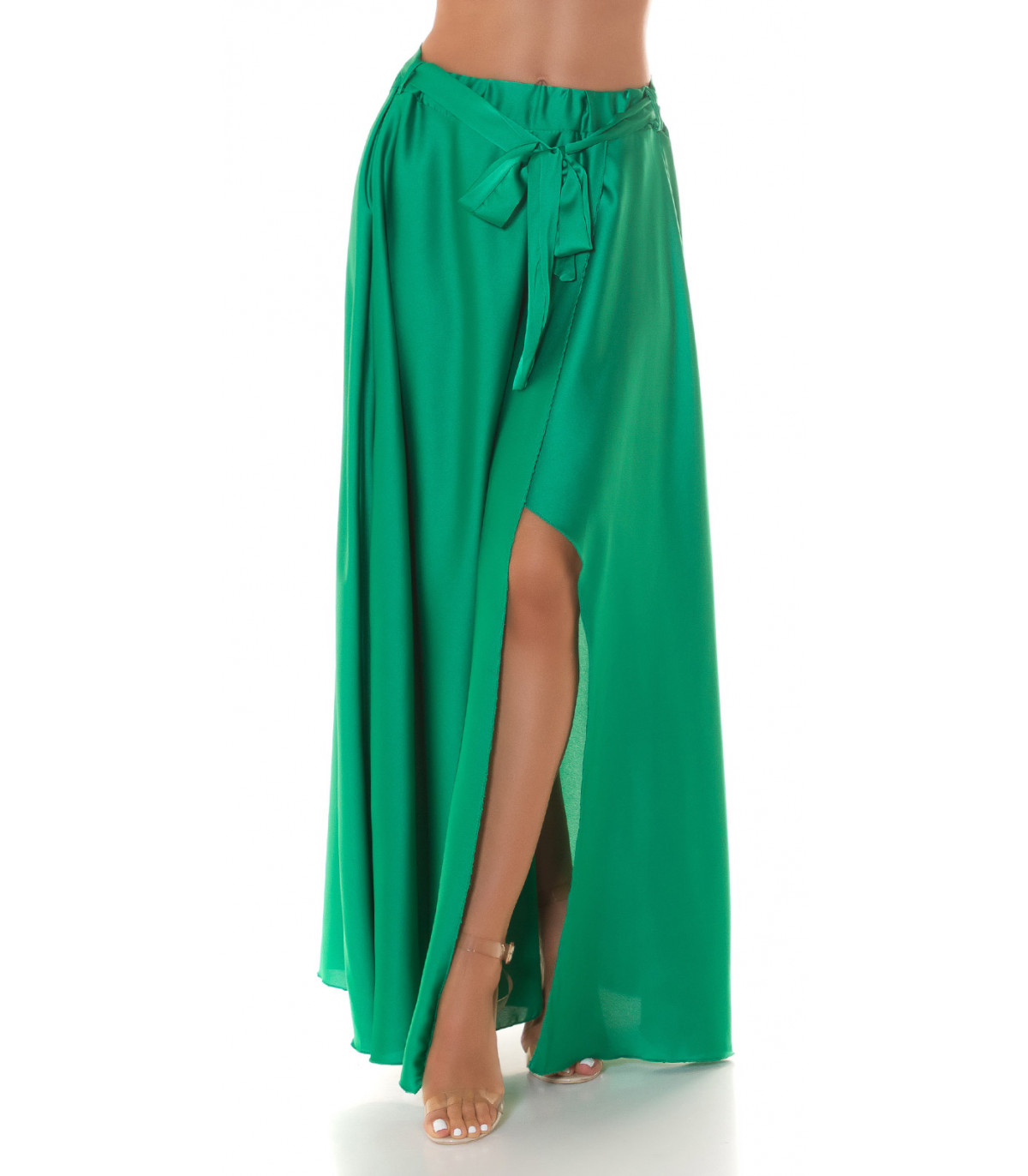 Plus de details Älä mieti liian pitkään - viimeinen kappale varastossa!Koucla vihreä satiinilook maksihame halkiolla