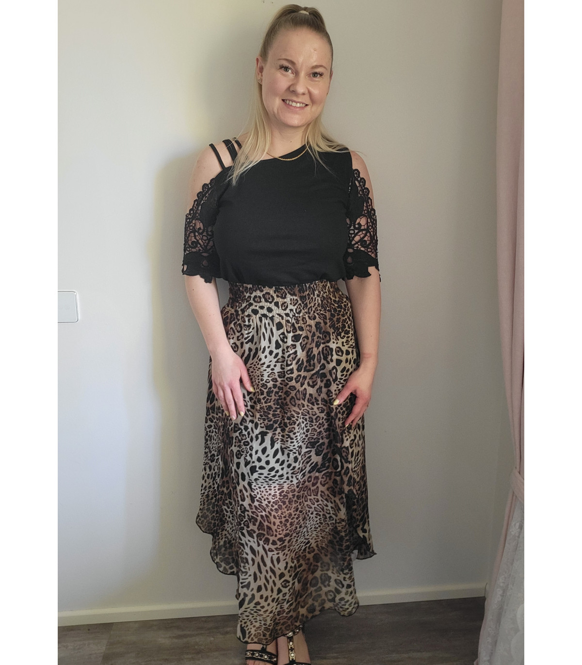 Aivan ihanan kevyt kesähame, samannäköinen kuin kuvassa. Koko oli juuri kuvatun mukainen, tilasin vyötärön mittojen mukaisesti.