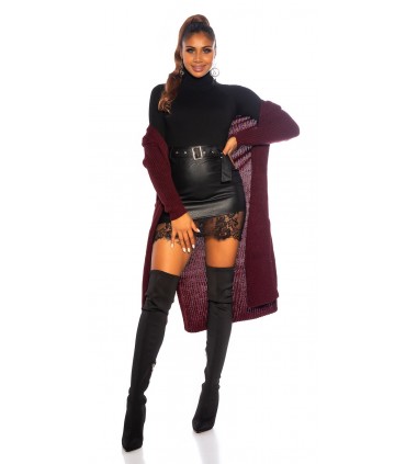 Musta pitsikoristeinen tekonahkahame vyöllä