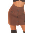 Ruskea korkeavyötäröinen hame napeilla ja koristetaskuilla
