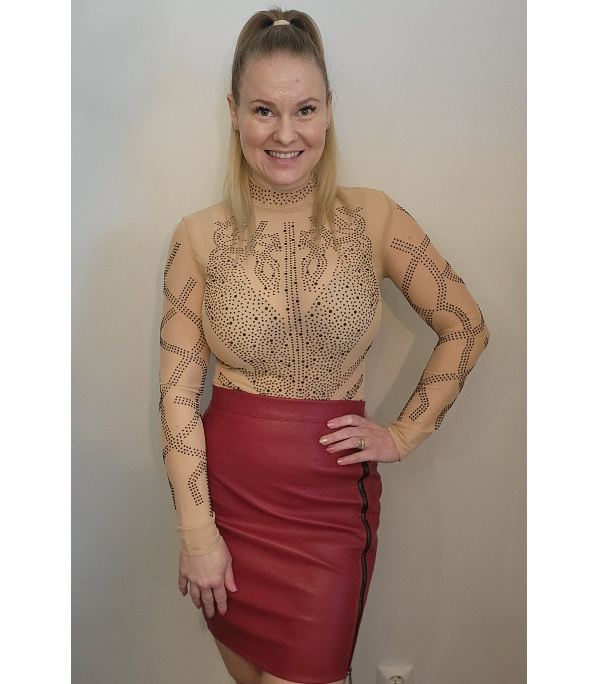 Viininpunainen korkeavyötäröinen tekonahkahame vetoketjulla