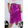 Yhdistä paljettikoristeinen midihame esimerkiksi juhlavan puseron tai juhlatopin kanssa. Violetti hame näyttää upealta muun muassa mustan tai valkoisen yläosan kanssa. Laita puseron helma hameen vyötärön alle piiloon tuodaksesi vyötäröä ja hametta paremmin esille, tai anna paidan helman hulmuta vapaana. Lisää vielä asuun sopivat asusteet täydentääksesi juhlalookin.
