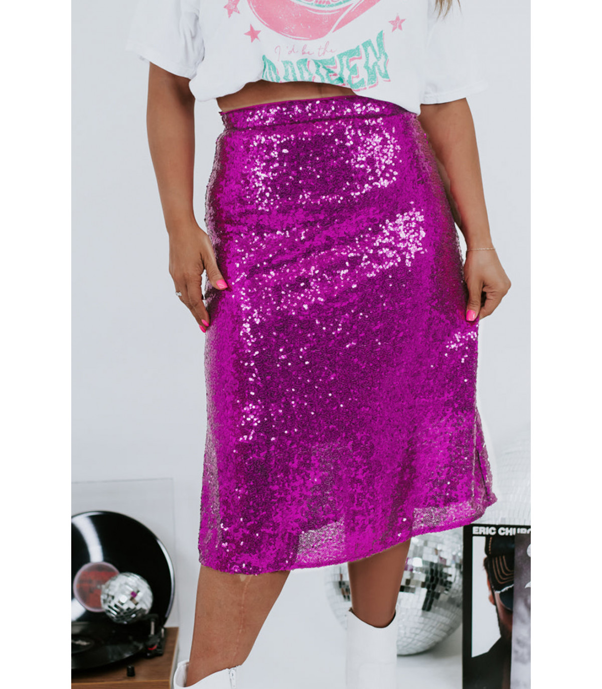 Korkeavyötäröinen violetti polvimittainen paljettihame. Säihkyvä paljettimidihame on täydellinen juhlahame, joka kerää katseet. Kaunis väri ja paljetit ihastuttaa. Korkeavyötäröinen hame on imarteleva sekä naisellinen. Pidempi, midimittainen hame paljeteilla sopii myös aikuisen naisen juhlatyyliin. Tyylikäs juhlahame paljettikoristeilla on saatavilla isommissa koissa, kokoina XL-XXXL. Alta löytyvistä vyötärön- ja lantionympärysmitoista saat apua oikean koon valintaan sekä hameen mallin sopivuuden arviointiin.