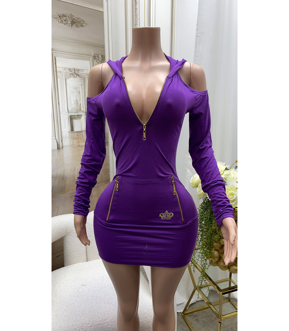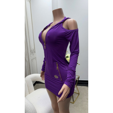 Koucla violetti hupparimekko olkahalkioilla ja vetoketjuilla - Näyttävä mutta rento vaate arkeen