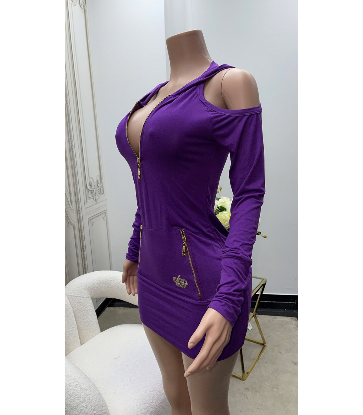 Pitkähihainen hupparimekko on täydellinen päivän asu, kun kaipaat asuusi sekä näyttävyyttä että mukavuutta. Käytä leggingsien kanssa tai sellaisenaan. Avattava vetoketju antaa sinulle päätösvallan miten paljastava tai peittävä haluat tyylisi olevan kunakin päivänä.
