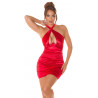 Upea punainen satiinilook minimekko näyttävällä kaula-aukolla. Seksikäs rintoja korostava kurkistusaukollinen leikkaus ja helman minimitta tekevät sinusta bileiden keskipisteen. Tämä satiinimekko on oikea valinta, kun haluat lumota treffikumppanisi vartalollasi. Yhdistä juhlavaan pörrötakkiin ja korkokenkiin luodaksesi Hollywood-tyylin. Kaulan edestä ristiin menevät, niskan taakse solmittavat nauhat. Takana piilovetoketju helpottamassa päälle pukemista. Seksikäs punainen mekko erottuu edukseen.