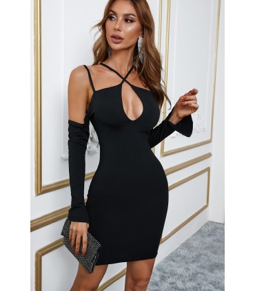 Musta pitkähihainen mekko kurkistusaukolla